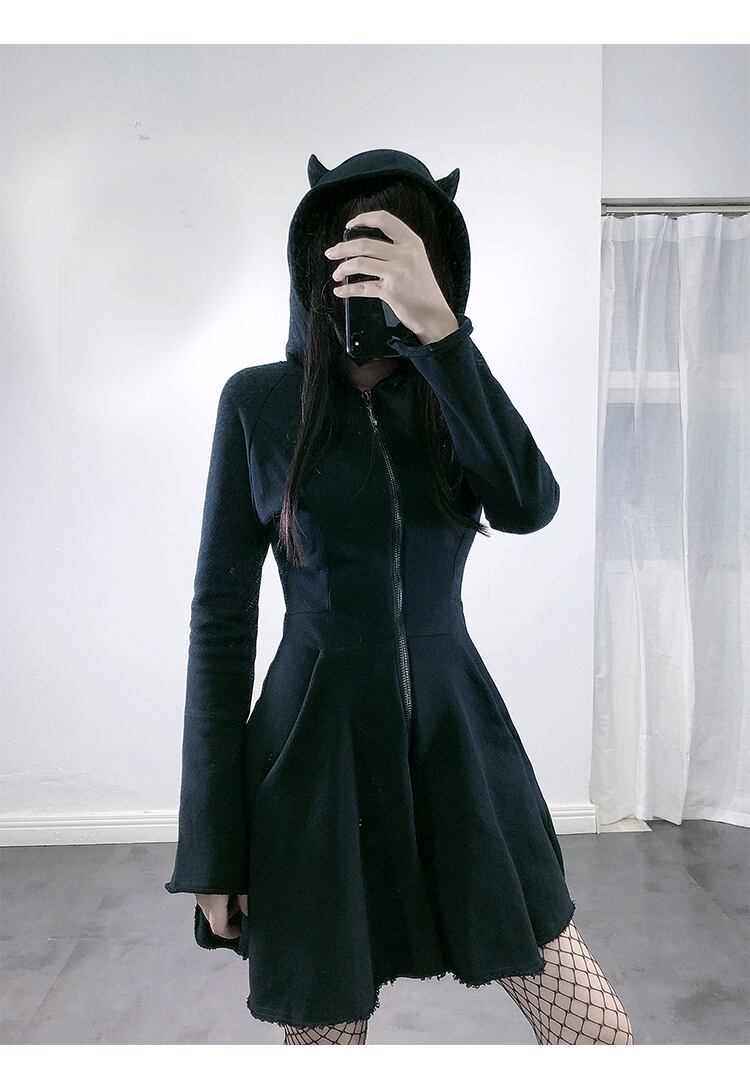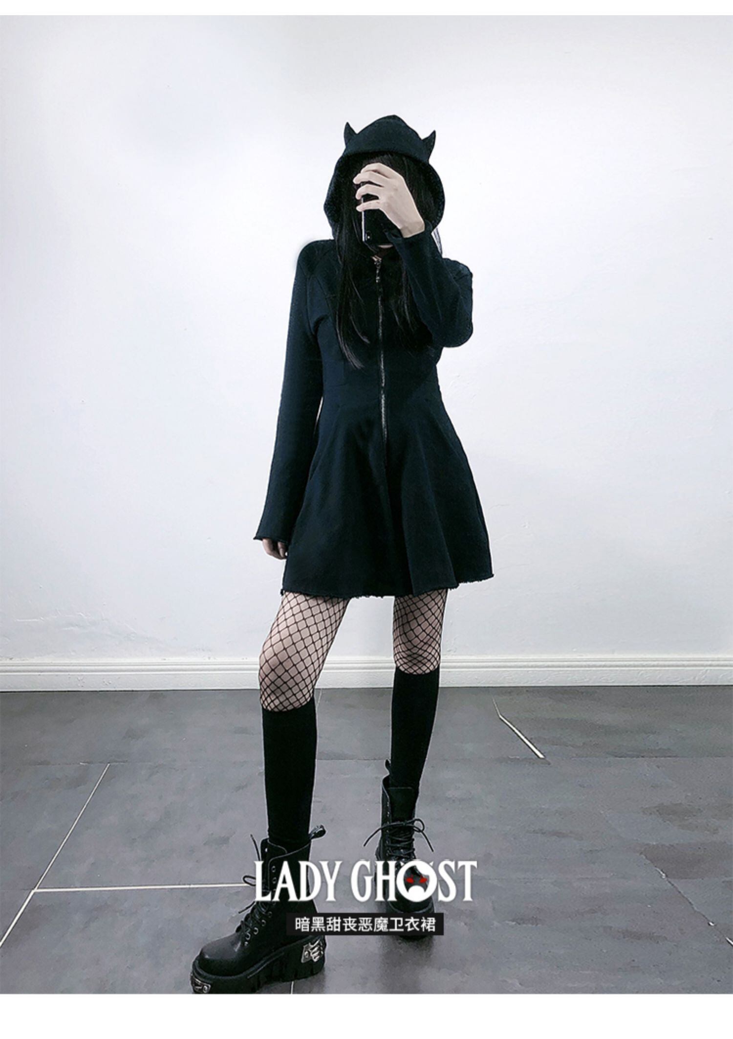 ダークスタイルフードセーター コート レディースジッパースプリング秋物ワンピース 大人ガーリー スウィート キュート カジュアル 春物 オータム ミドル丈 pLegLadGothic165439936052 | LADY GHOST