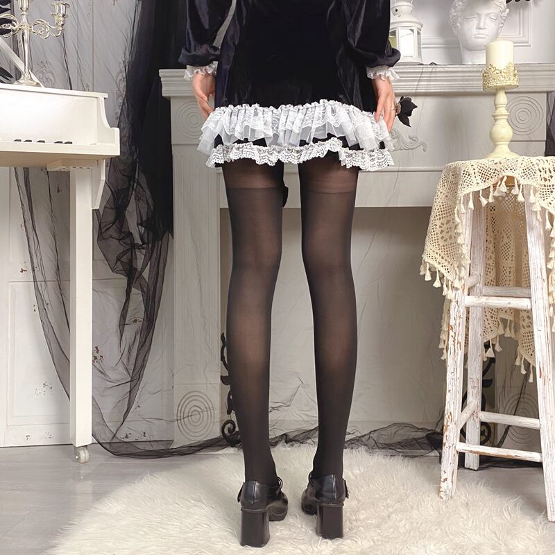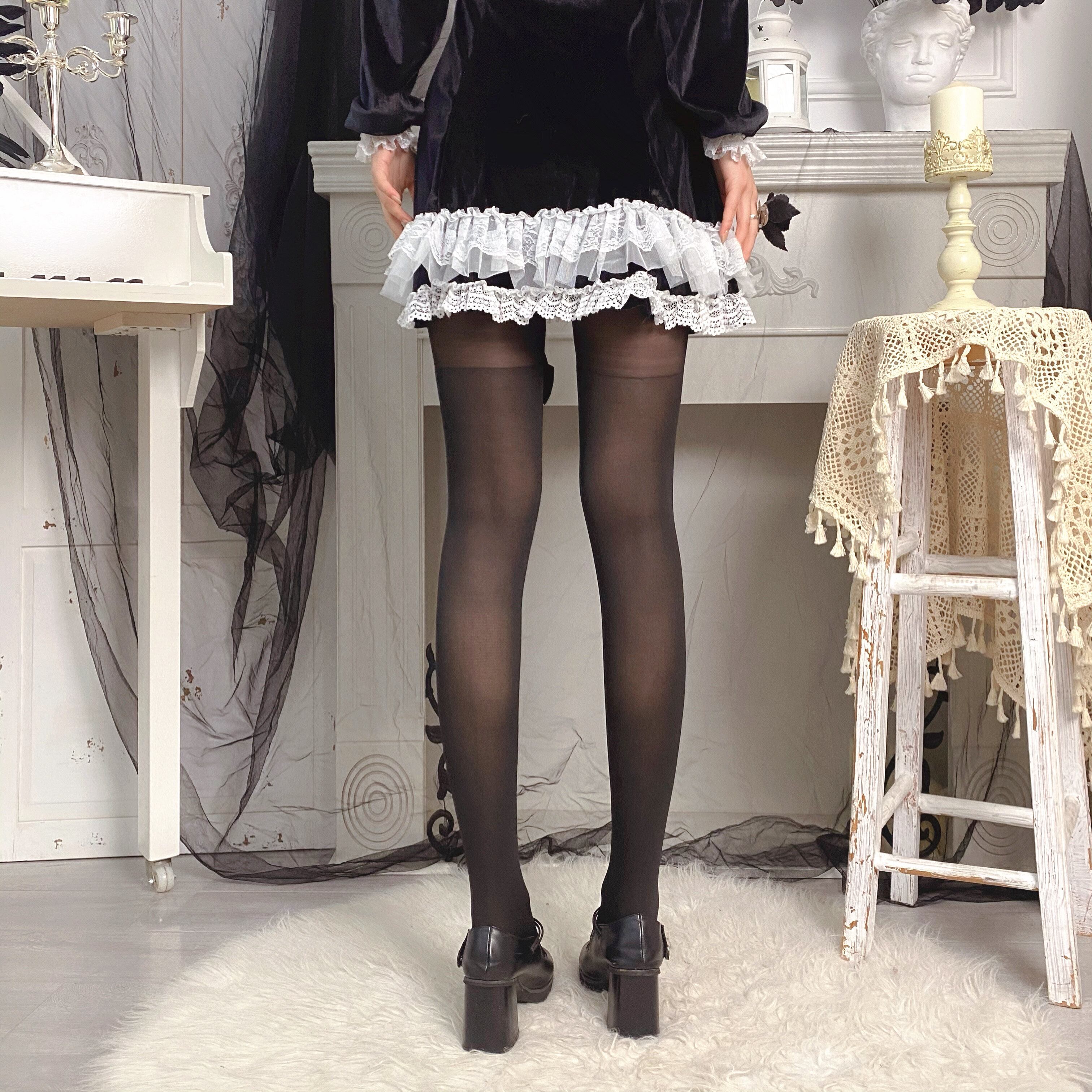 LADY GHOSTリボンブラックストッキング レディース レッド 大人ガーリー スウィート キュート カジュアル タイツ ソックス ステッチ pLegLadGothic228248246969 | LADY GHOST