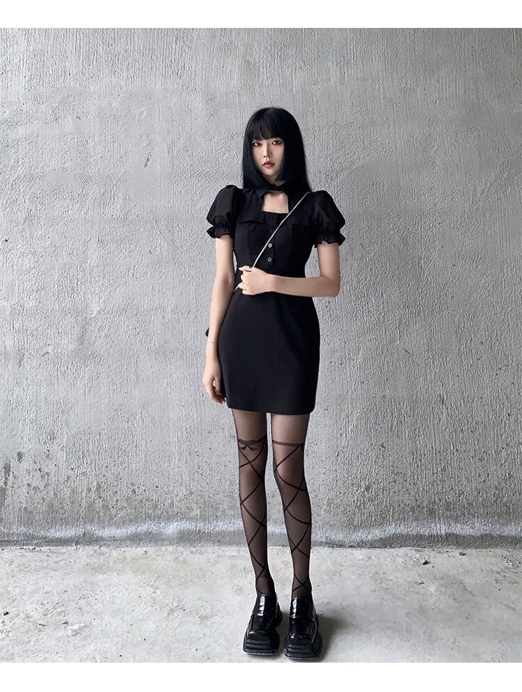 スリーブワンピースレディース夏服ブラックスカート スタイル 大人ガーリー スウィート キュート カジュアル 夏物 スクウェア pLegLadGothic143208723198 | LADY GHOST