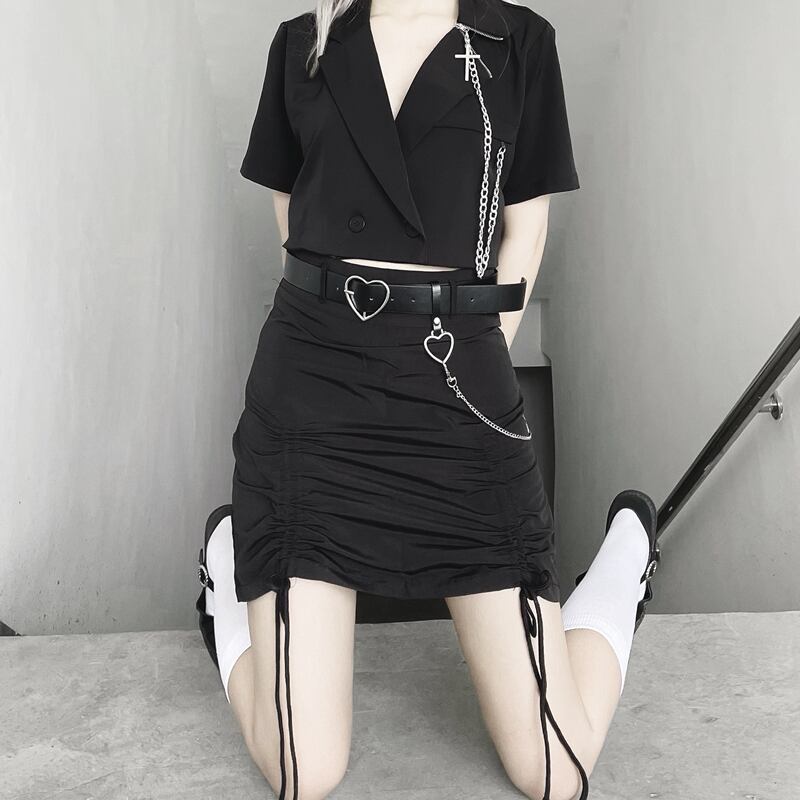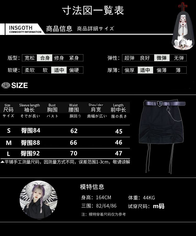 LADY GHOSTハイウェストウェストプリーツAラインスカート 夏服ベルト レディース ストリート 夏物 ハーネス ウエスト pLegLadGothic263645522268 | LADY GHOST