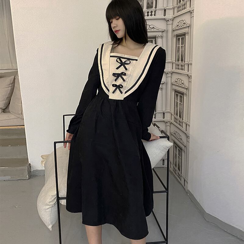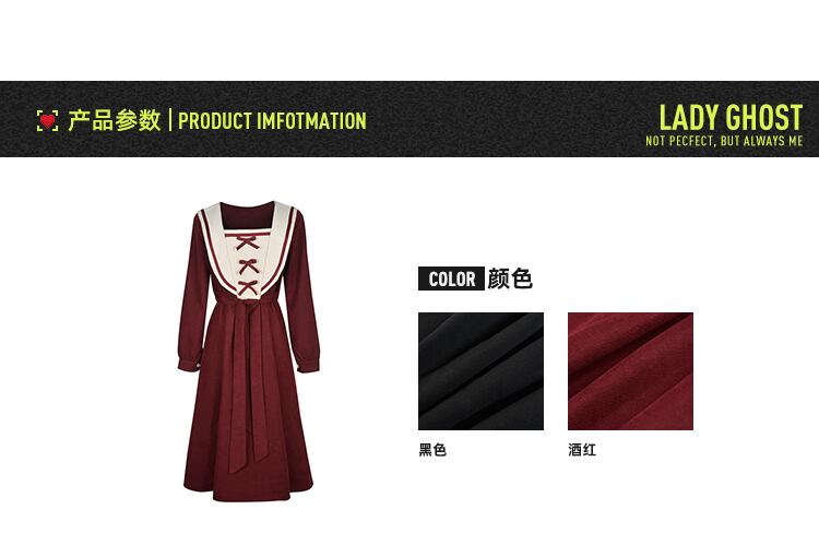 コーデュロイワンピーススプリング秋物スタンダードネイビースタイルカラースカート ウェスト薄手 レトロ 春物 オータム ウエスト pLegLadGothic195122781142 | LADY GHOST