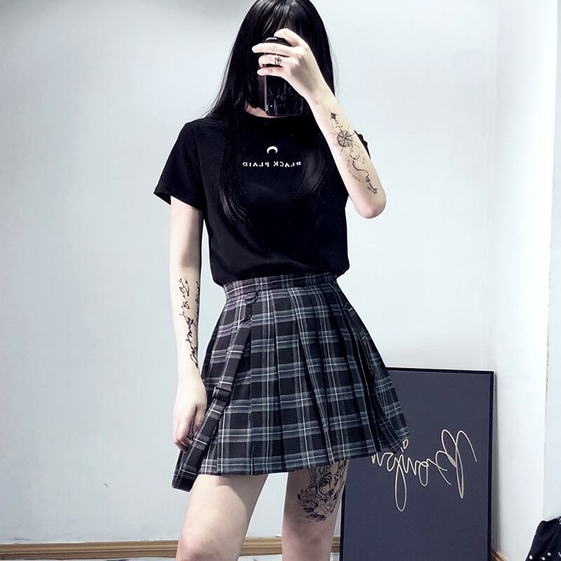 格子柄ハイウェストウェストプリーツスカート レディーススプリング秋物スタンダードブラックホワイトスタイル レトロ 春物 オータム ウエスト pLegLadGothic185498111802 | LADY GHOST