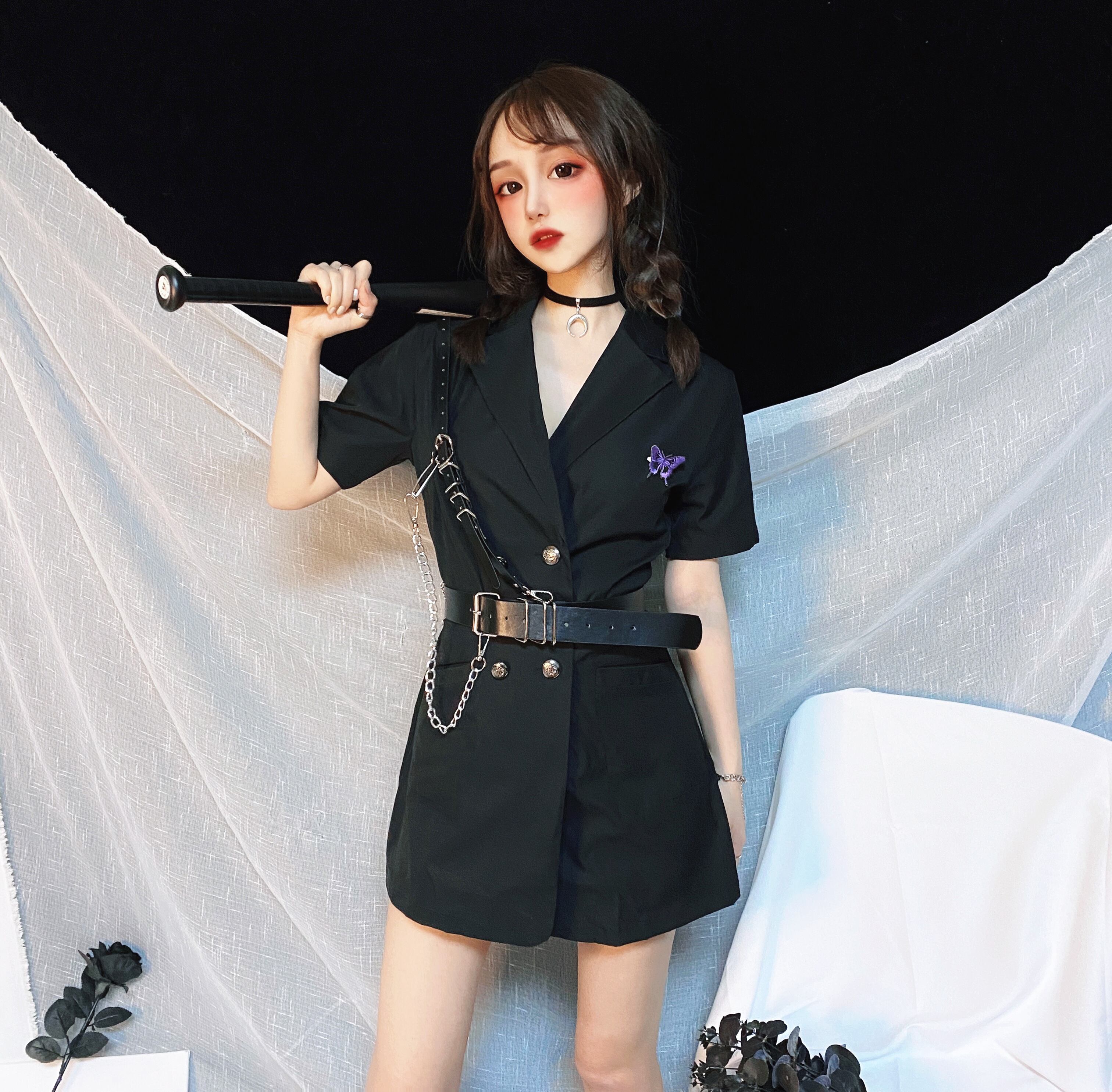 LADY GHOSTダークメタルButterflyデザイン チェーン ベルト ブラックスカート シャツ レディース ハーネス pLegLadGothic254133211343 | LADY GHOST