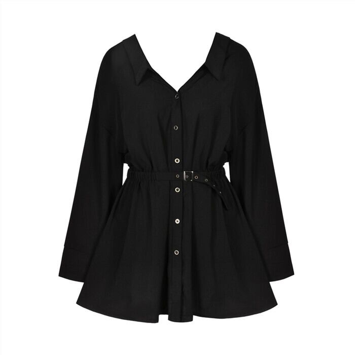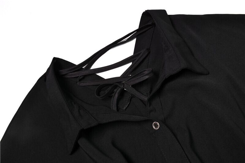 シャツ スカート ダークスタイルウェストVネックホルターワンピースレディースブラック ロング 大人ガーリー スウィート キュート カジュアル 長袖 ウエスト pLegLadGothic381825732025 | LADY GHOST