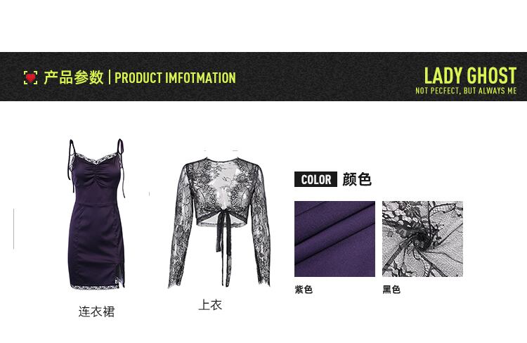 色:レースカーディガン(スポット),紫色のドレス(スポット),黒のドレス(スポット)
