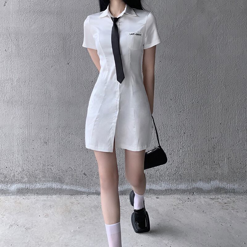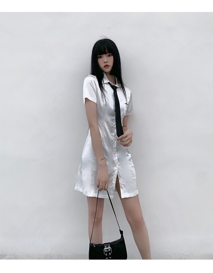 サテンシャツ ワンピース夏服ウェスト韓国ファッションスカート 大人ガーリー スウィート キュート カジュアル 夏物 ピュア ウエスト pLegLadGothic139608606962 | LADY GHOST
