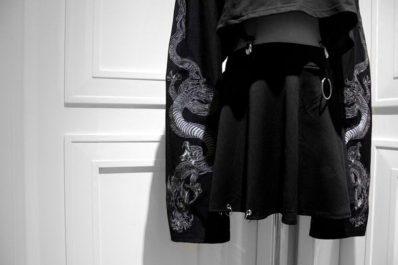 色:黒,ブラックパープルドラゴンパターン