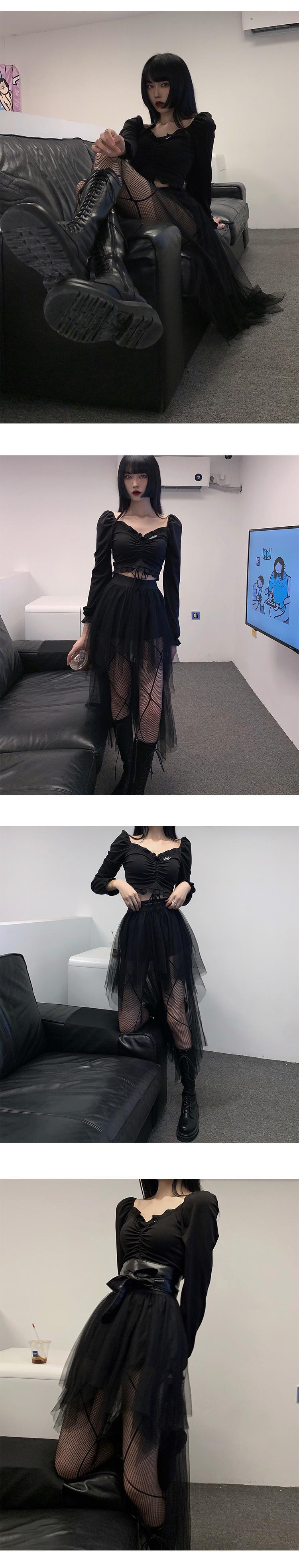 色:スカート,ベーシックネットソックス,ドローストリングパフスリーブトップ,クロスオーバーネットソックス,PUストラップウエストシール(100-135cm),キャミソール(全サイズ)