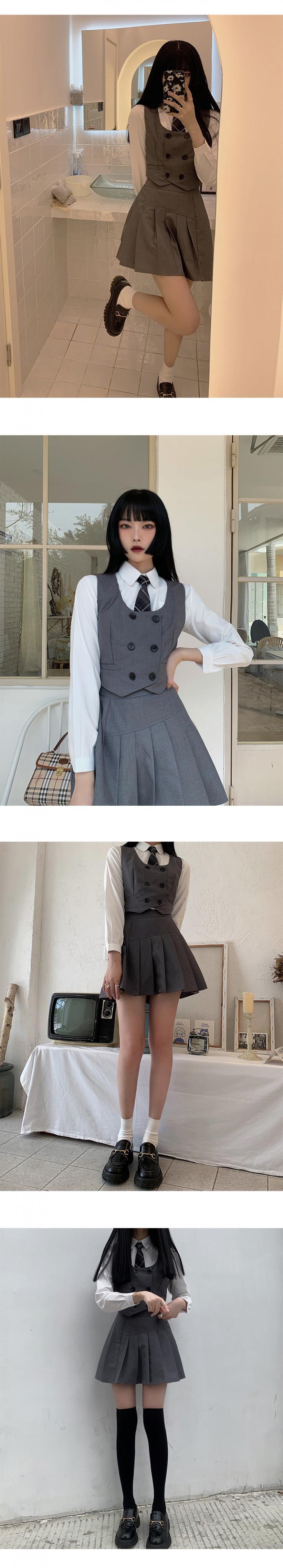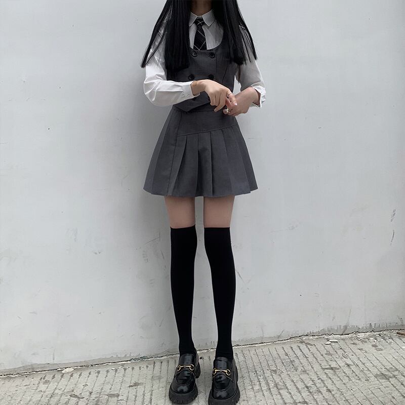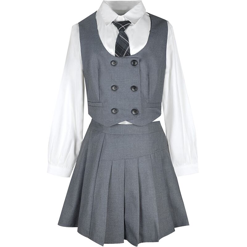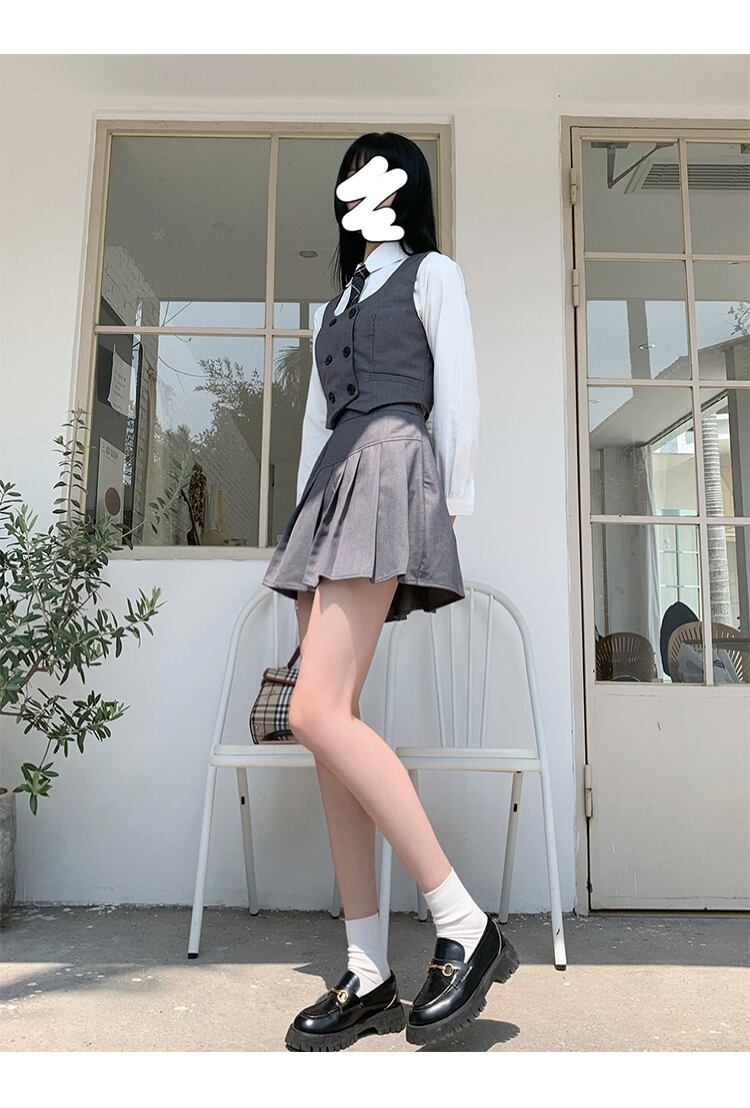 色:ベスト,プリーツスカート,長袖シャツ+チェック柄ネクタイ