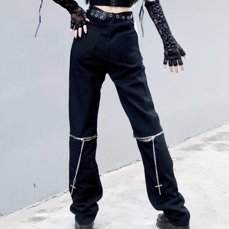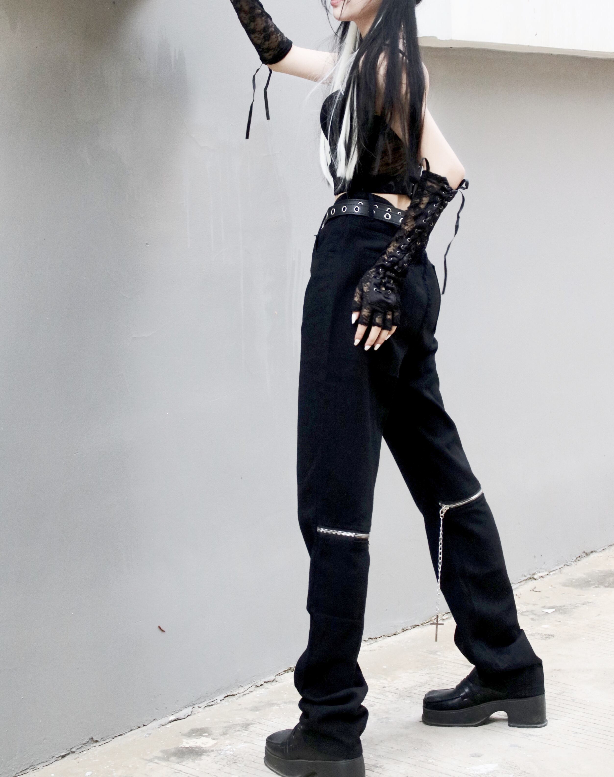 LADY GHOSTブラックパンツ 夏服チェーン ハイウェストウェストルーズカジュアルレディース ストリート 夏物 ウエスト pLegLadGothic266840649552 | LADY GHOST