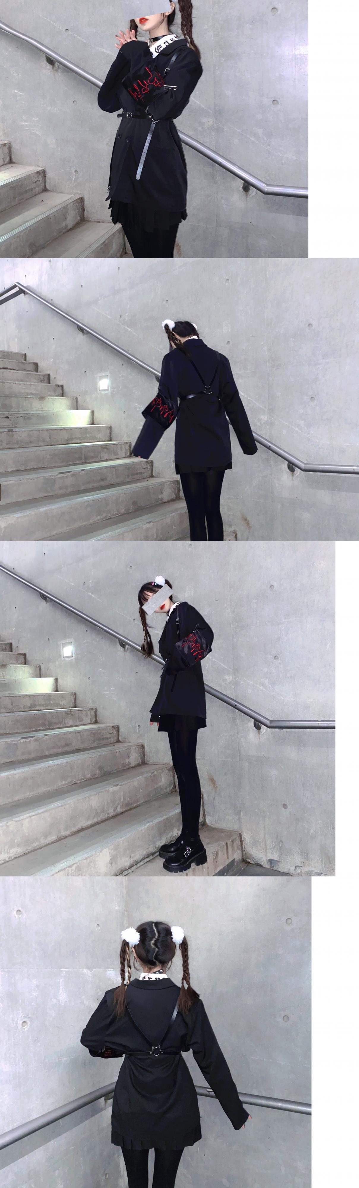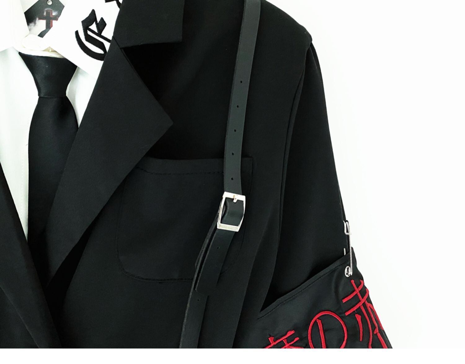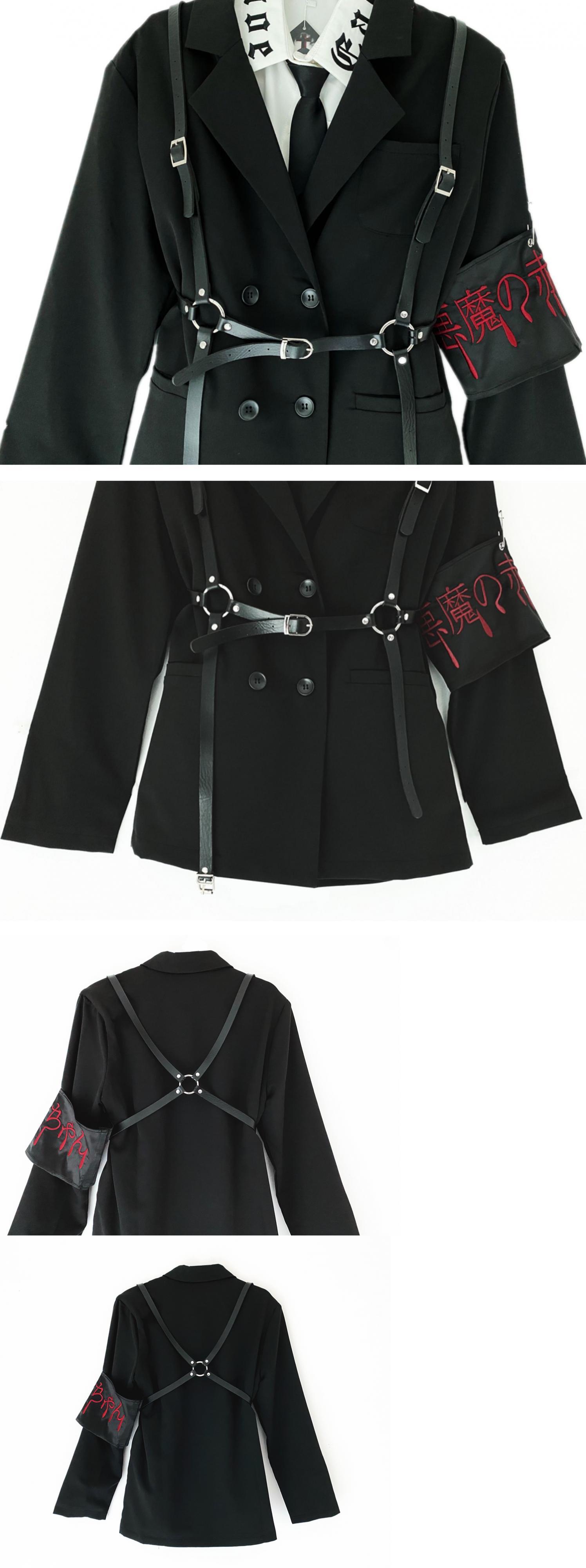 色:黒のスーツ+アームバンド+ストラップ,黒のスーツスーツ+シャツ+ネクタイ,黒棘スーツ+腕章+ストラップ