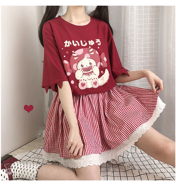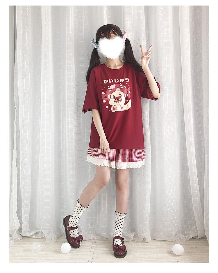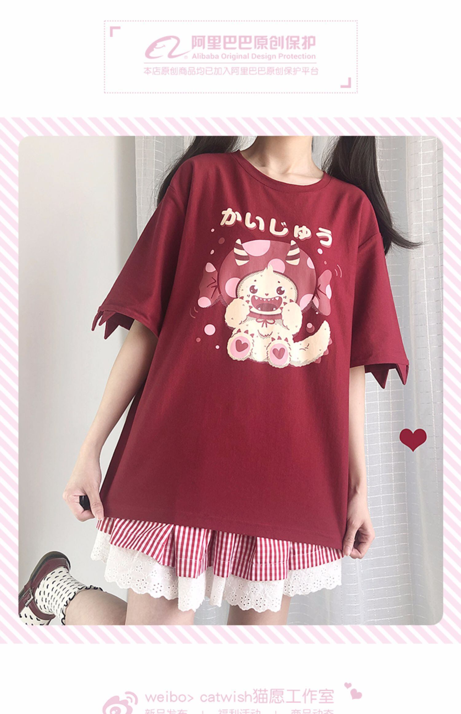 ルーズTシャツ夏服 大人ガーリー スウィート キュート カジュアル 夏物 ステッチ キャットウィッシュ10969751737