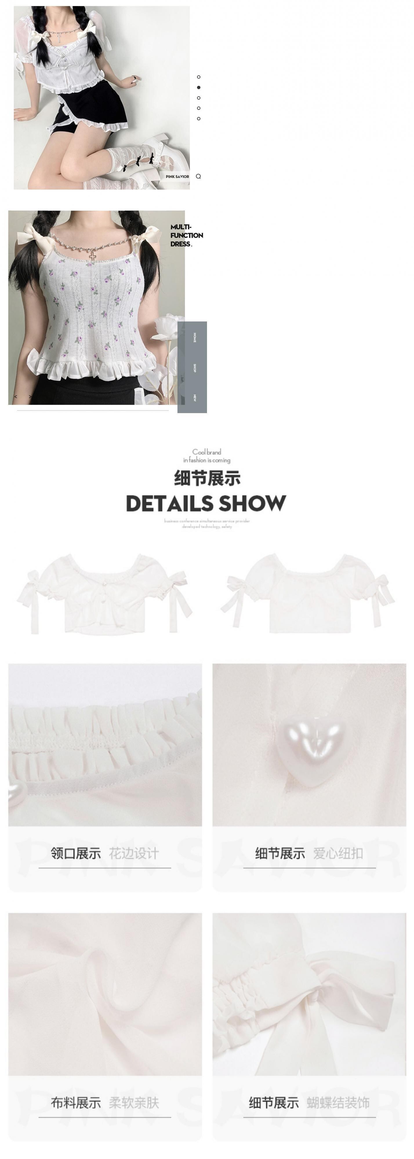 色:ブルーフラワースリング,パープルフラワースリング,白の透けシフォンカーディガン,紫の花半袖,ブルーフラワー半袖,ブラックレーススカート