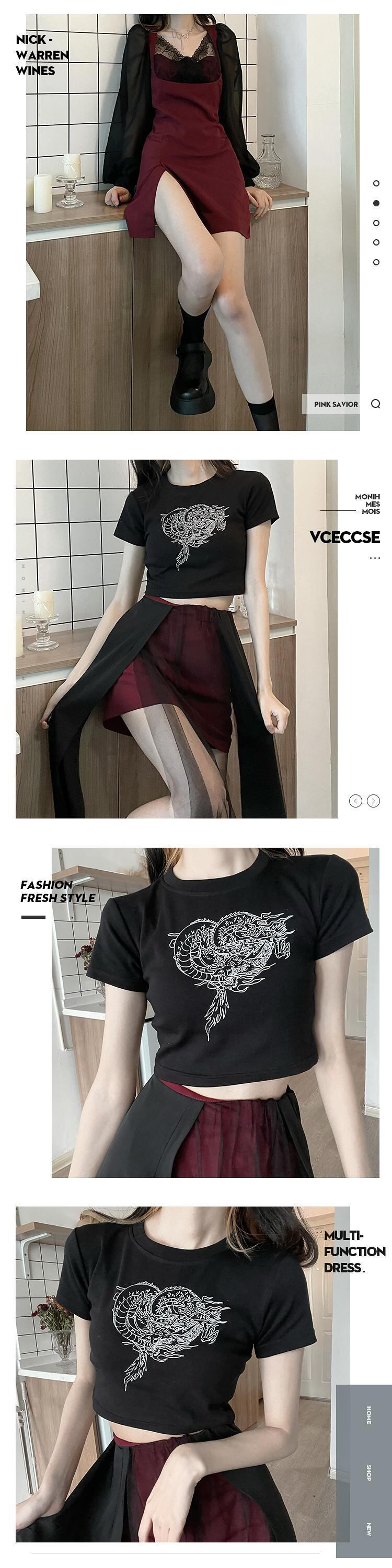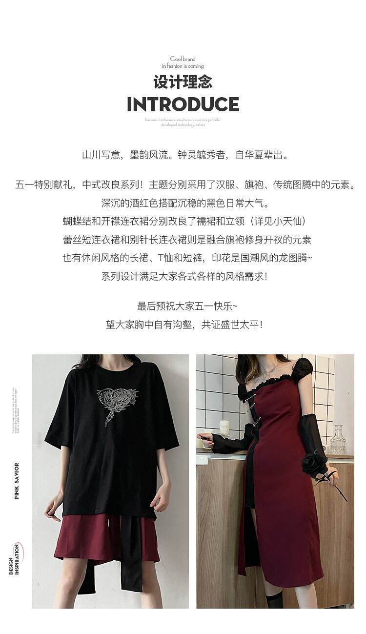 色:ドラゴンプリントブラウス,ドラゴンプリントカジュアルTシャツ,赤と黒の不規則なスカート,赤いズボン,ピンロングドレス,レースのショートドレス,大きな弓と青と白のドレス,大きな弓と赤と黒のドレス,中国のカーディガンの赤と黒のドレス,中国のカーディガンの青と黒のドレス,純粋な黒のズボン