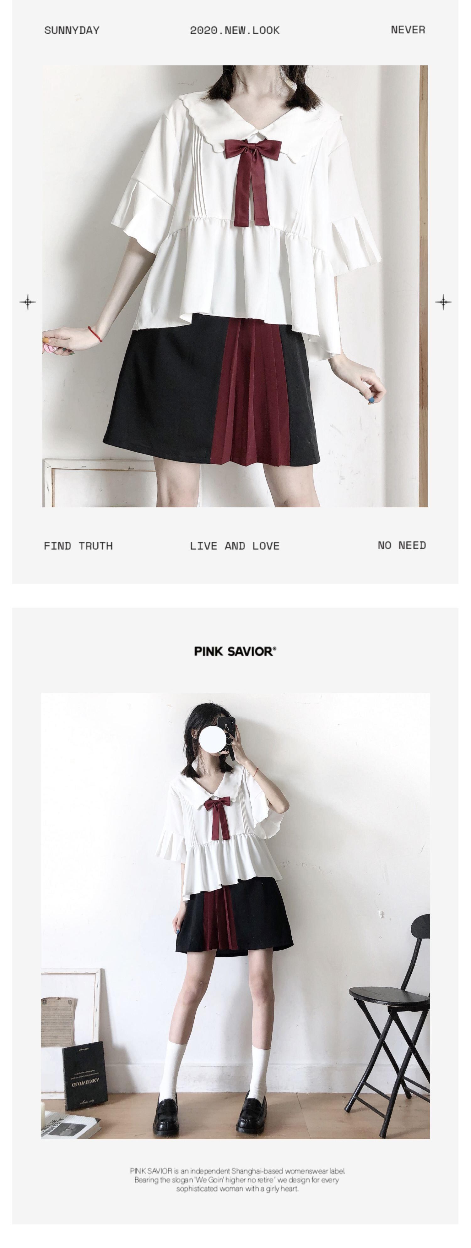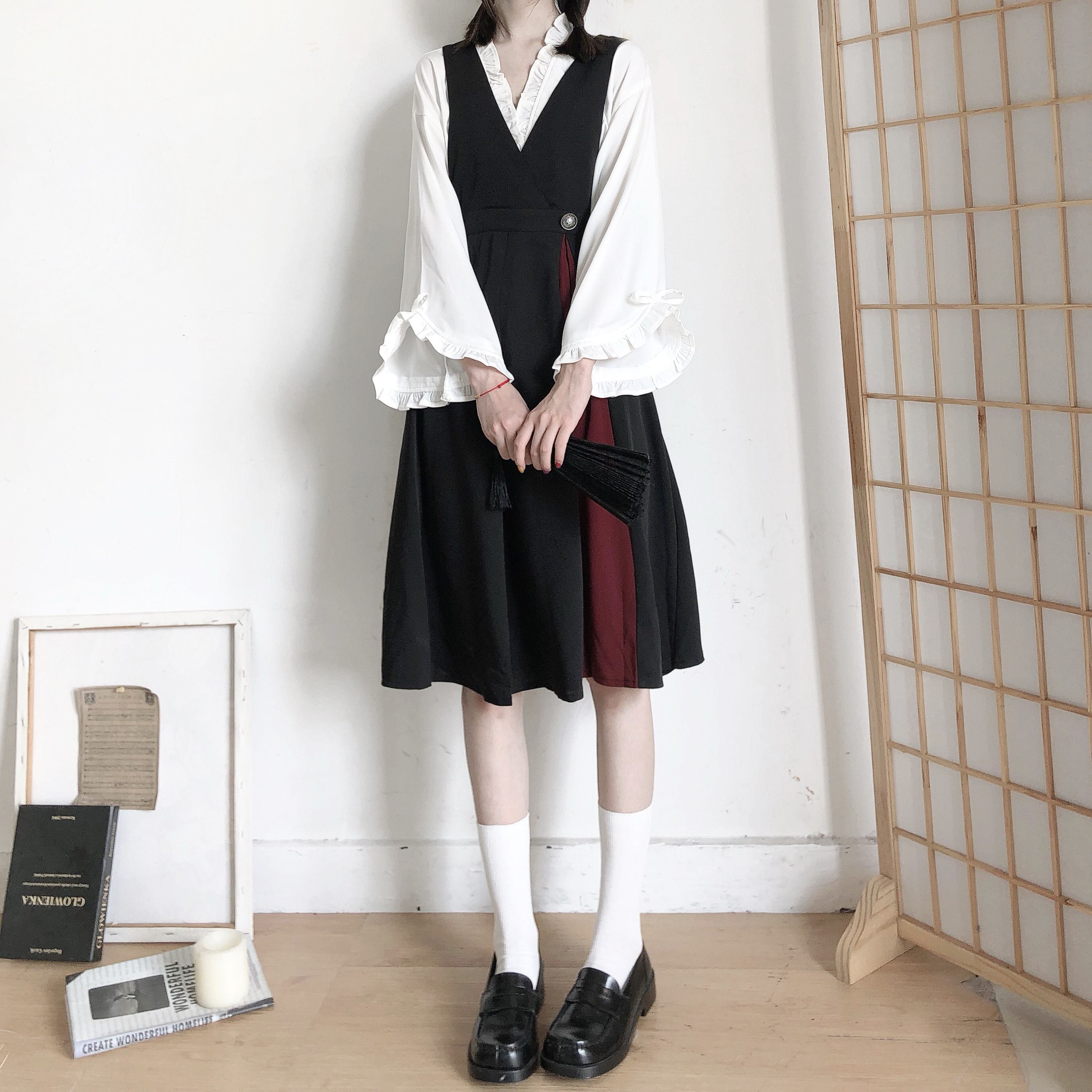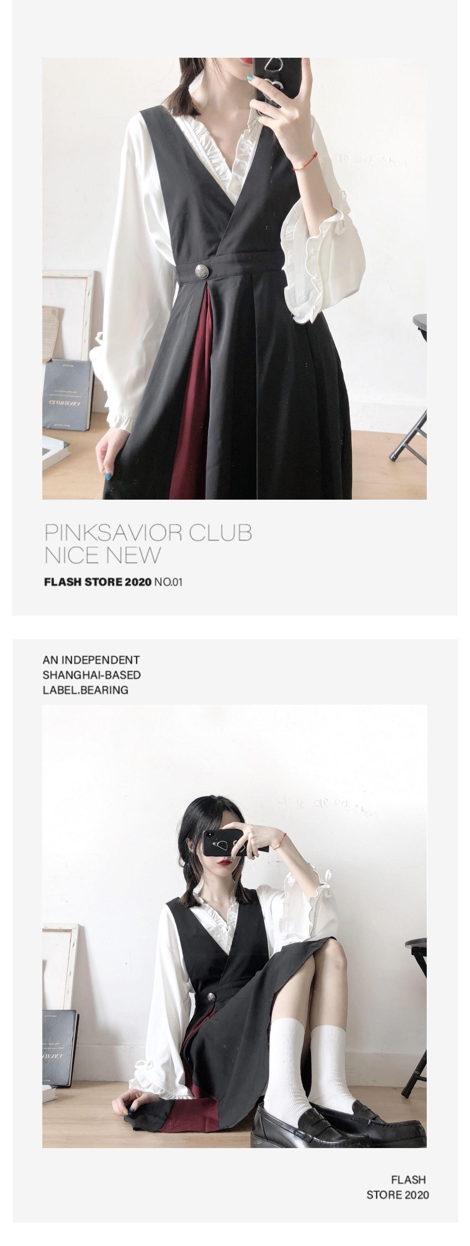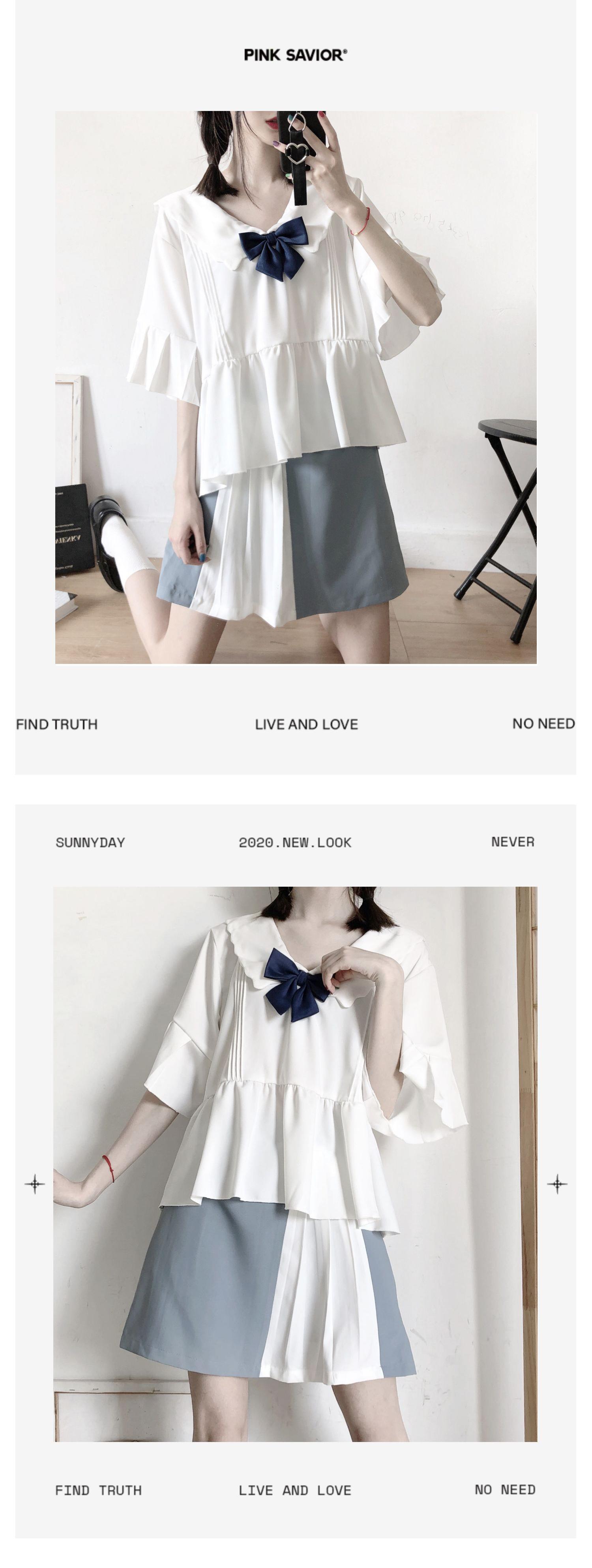 色:ブラックタンクトップスカート,ブルーベストスカート,黒スカート,青いスカート,白いレースの襟のシャツ(無料のシアンの弓),白い斜めの前立てネクタイシャツ,ホワイトレースカラーシャツ(無料ワインレッドボウ)