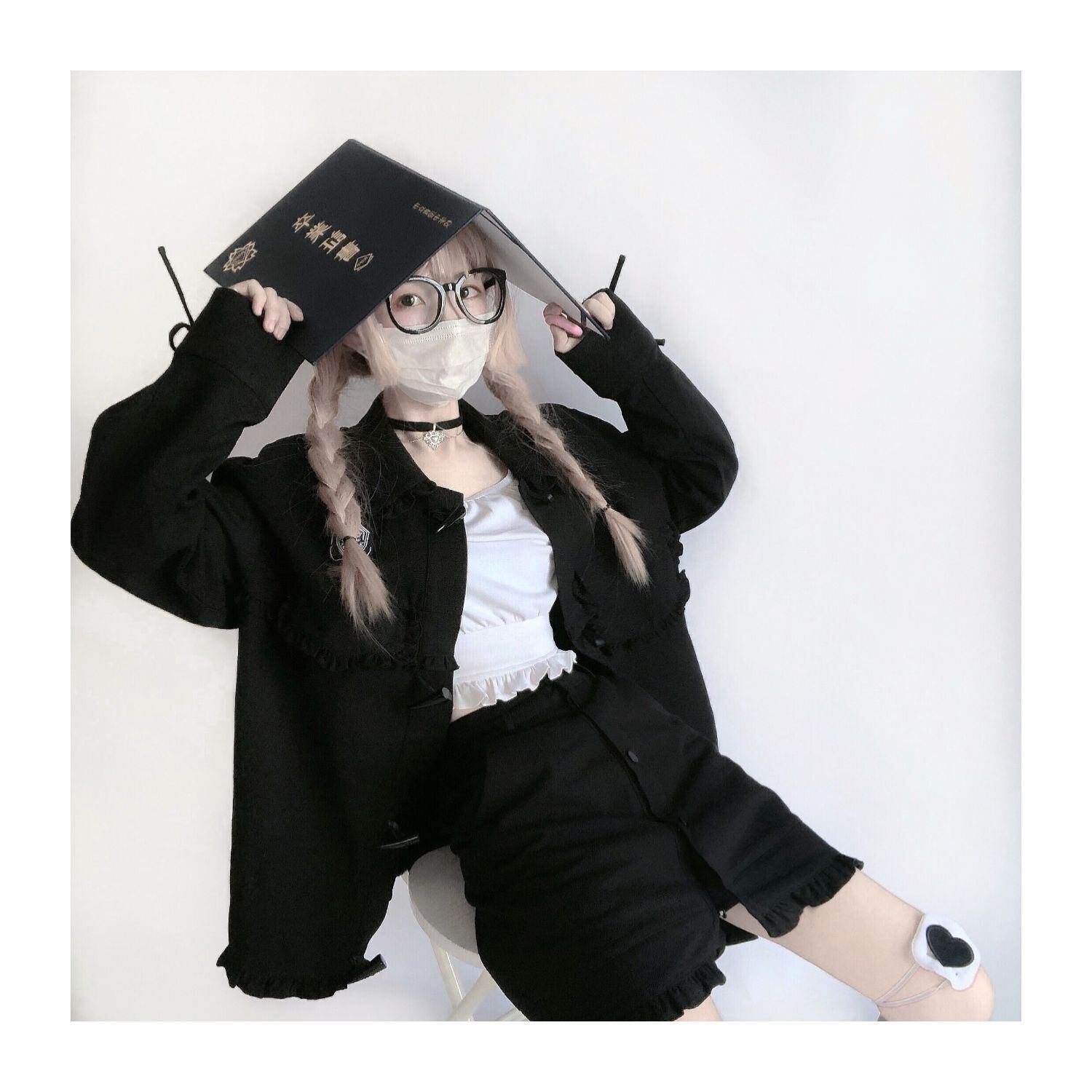 色:白いレースの袖,ネイビーカラーボタンベストドレス,レースジッパー取り外し可能なショートジャケット,レースの袖口が付いたロングコート,レーススカート,伸縮性のあるレースのウエストバンドホワイトインナー,不規則な面取りされたエッジが内側で白く交差しています,ウエストに手作業で着用した2wayパンツ