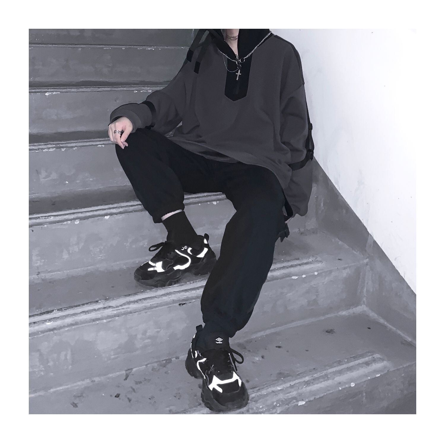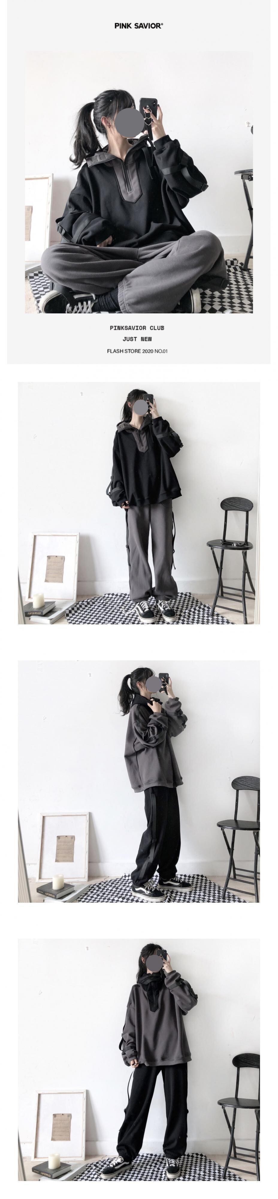 色:グレーのズボン,マスターブラックセーター,黒いズボン,メインの灰色のセーター