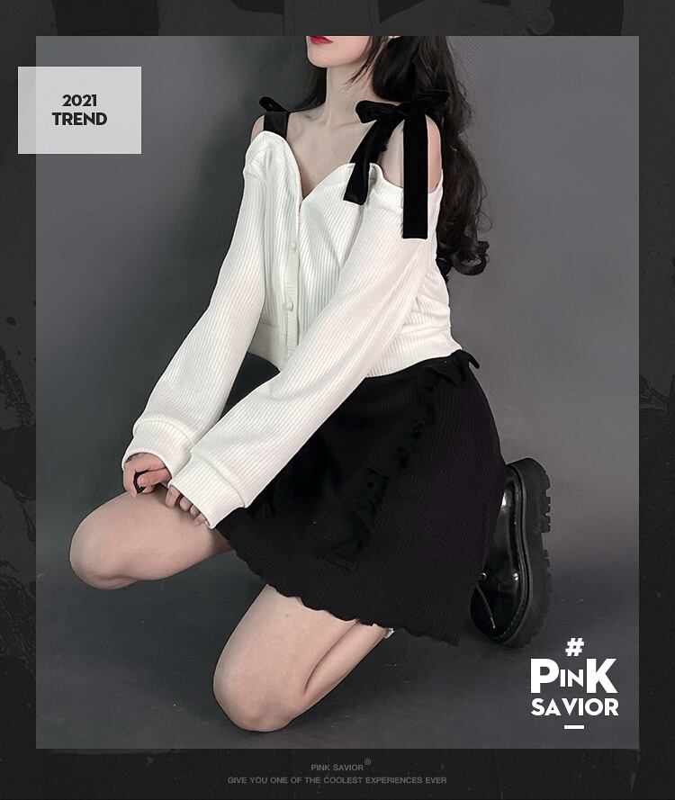 色:ホワイトレースアップトップ(レースブラック),ブラックレースアップトップ(レースホワイト),ブラックロングサスペンダースカート,黒のショートサスペンダースカート,ホワイトのショートサスペンダースカート,白いホオジロトップ