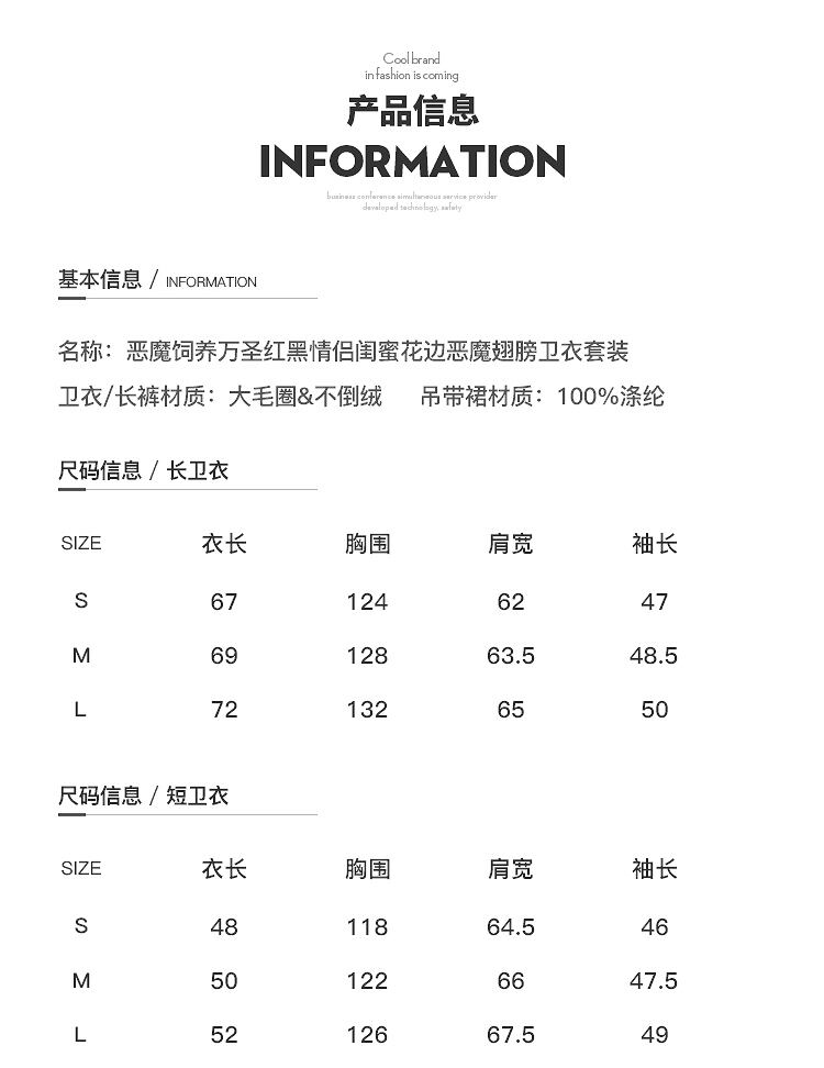 色:ロングセーター(取り外し可能な翼),ズボン,赤と黒のサスペンダースカート,ショートウィングスウェットシャツ,黒と白のサスペンダースカート,ロングプラスフリースセーター(取り外し可能なウィング)