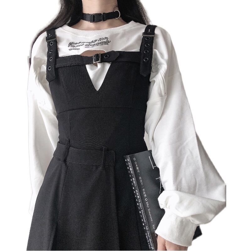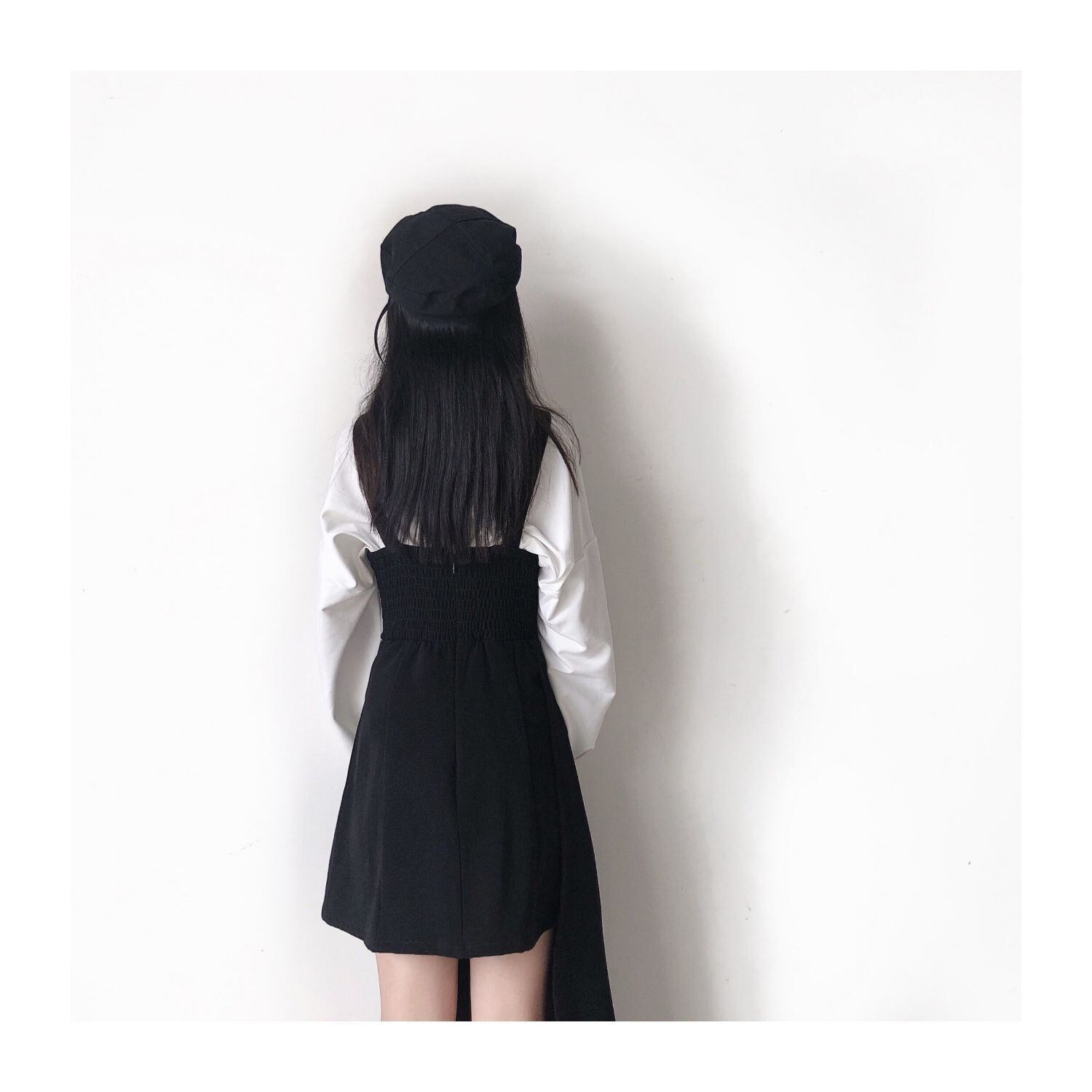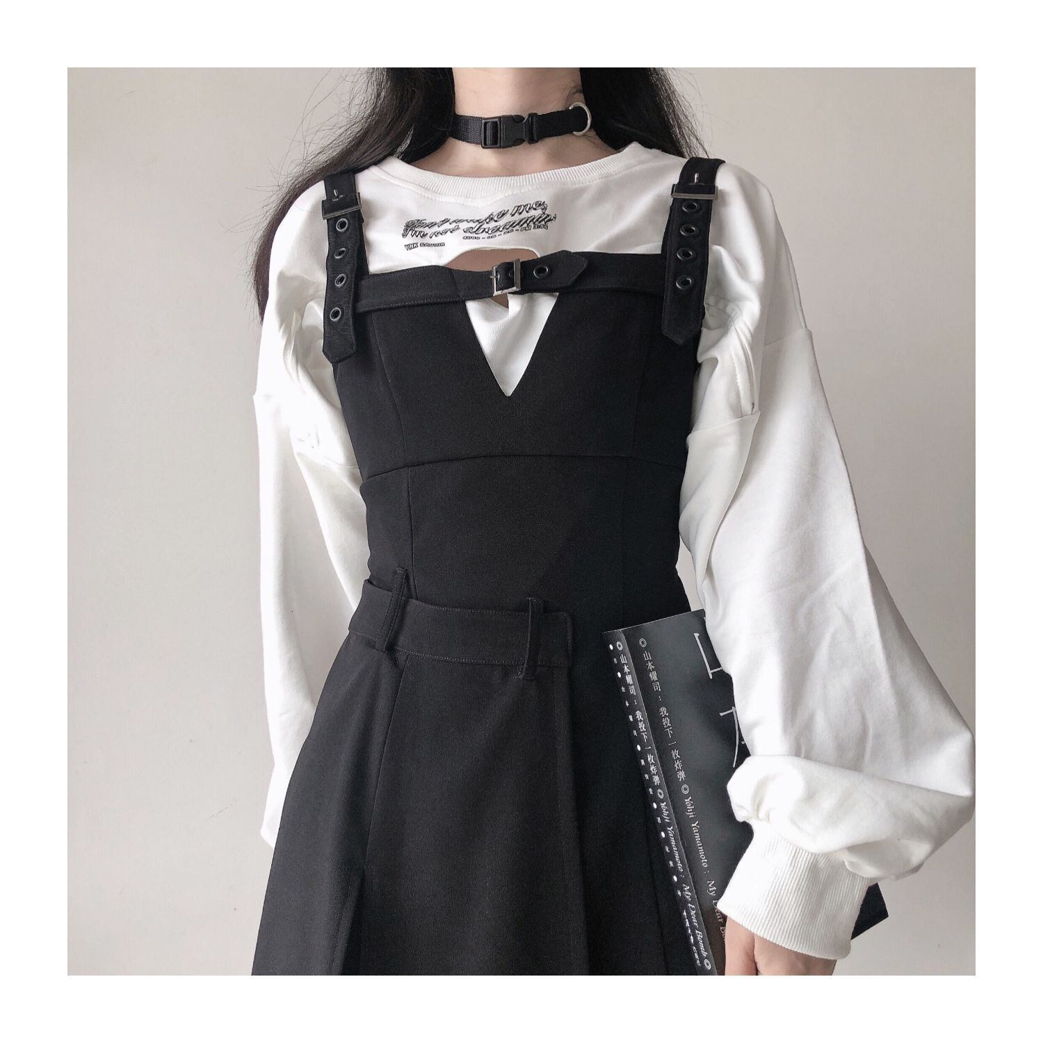 色:ブラックサスペンダースカート,黒いセーター,白いセーター