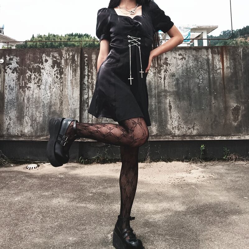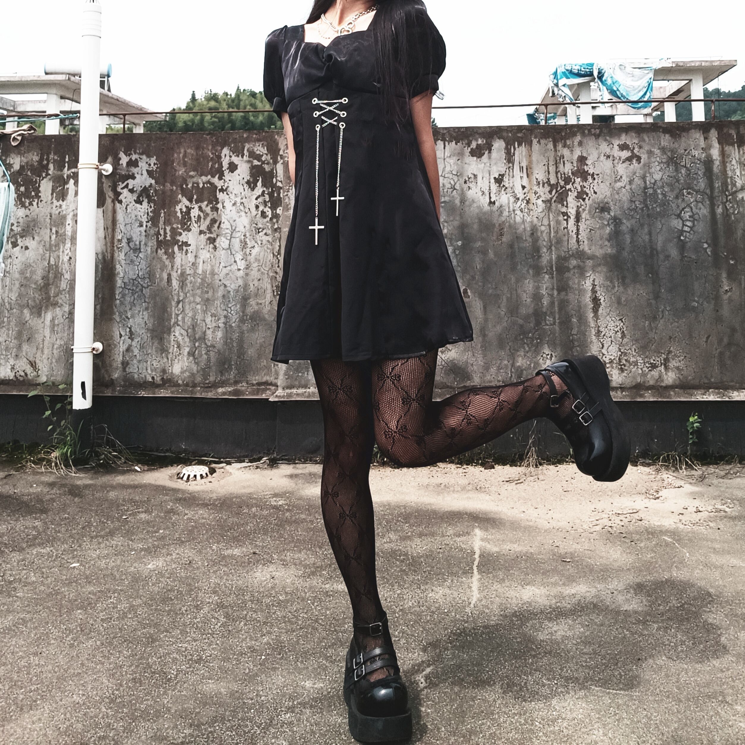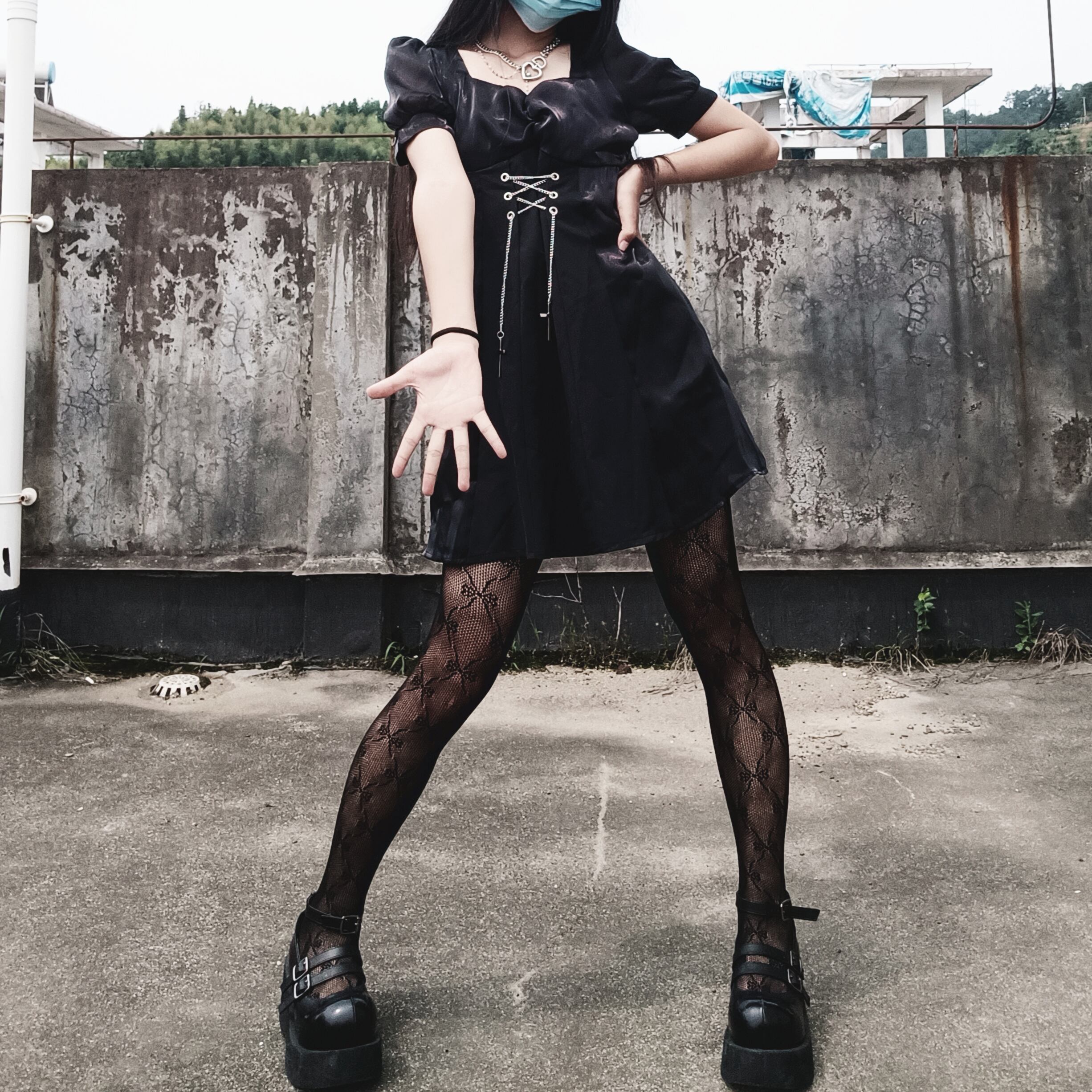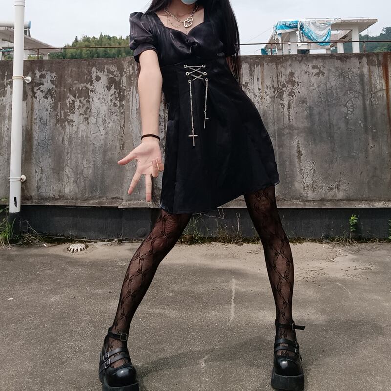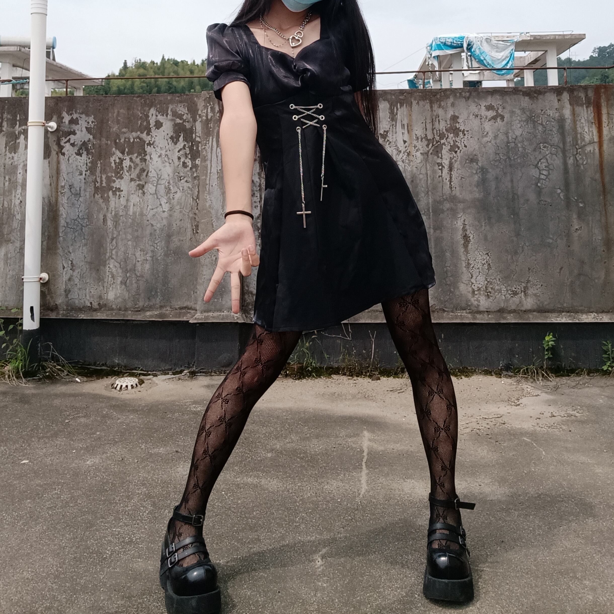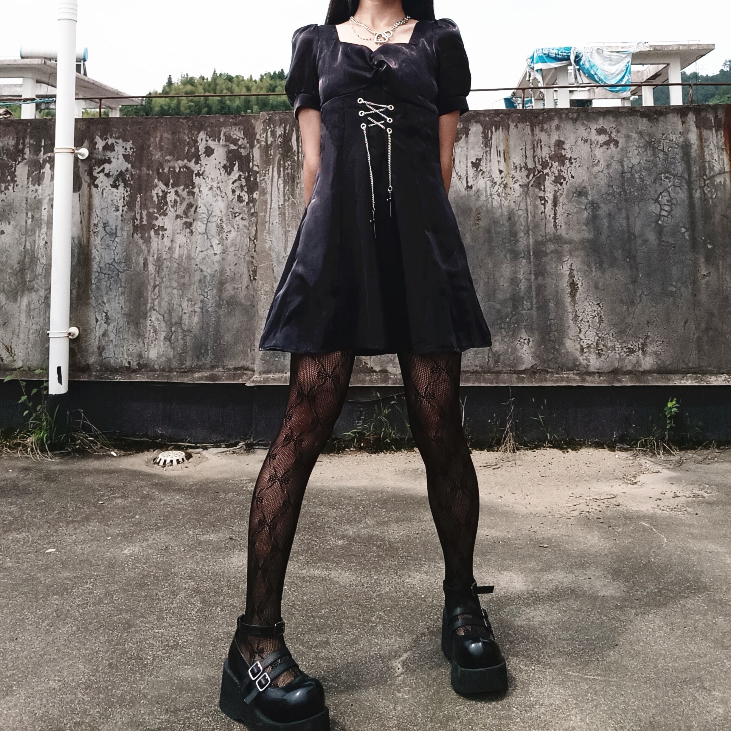 LADY GHOSTダークブラックスカート レディースハイウェストウェスト夏服チェーン ギャザーワンピース 夏物 ウエスト pLegLadGothic249198525100 | LADY GHOST