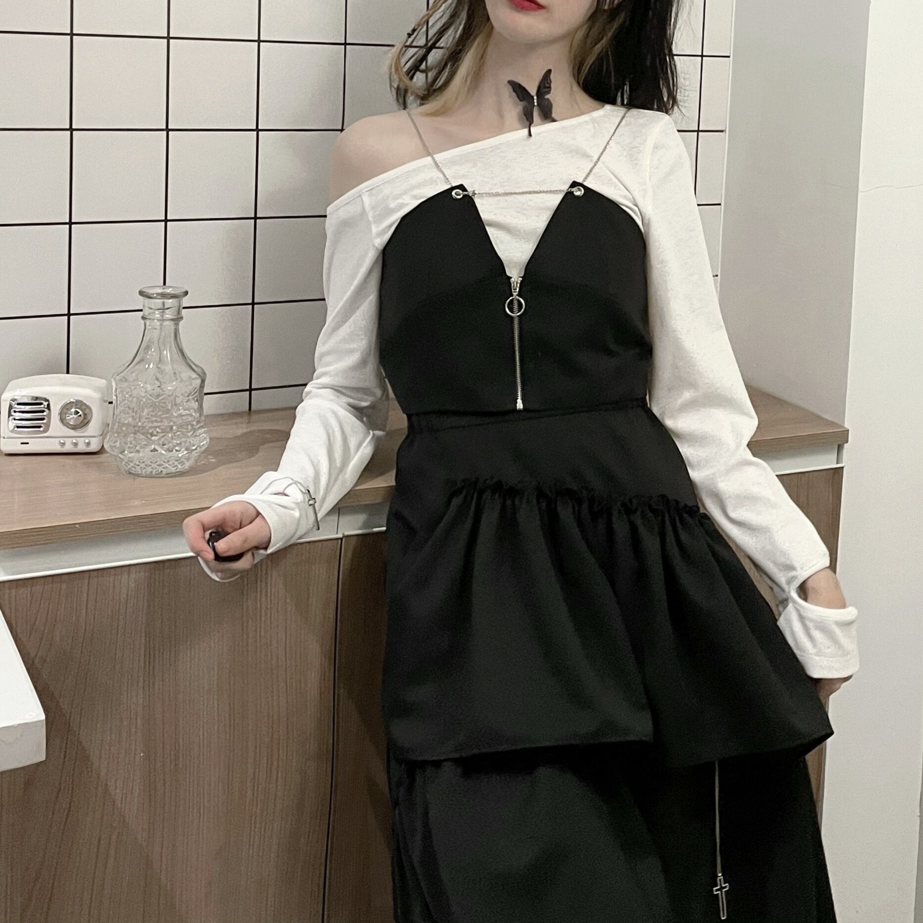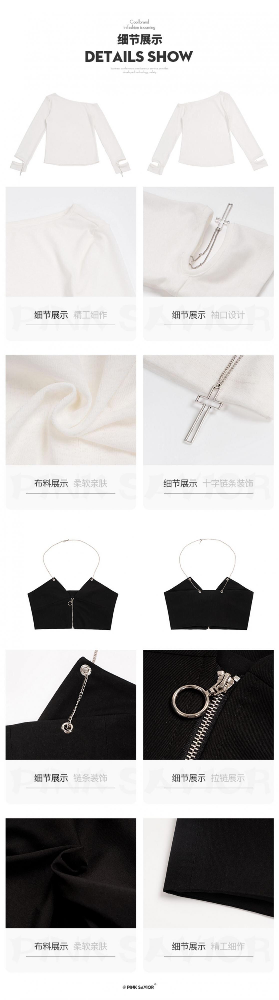 色:白の透明な日焼け止めトップ,ブラックチェーンコルセット