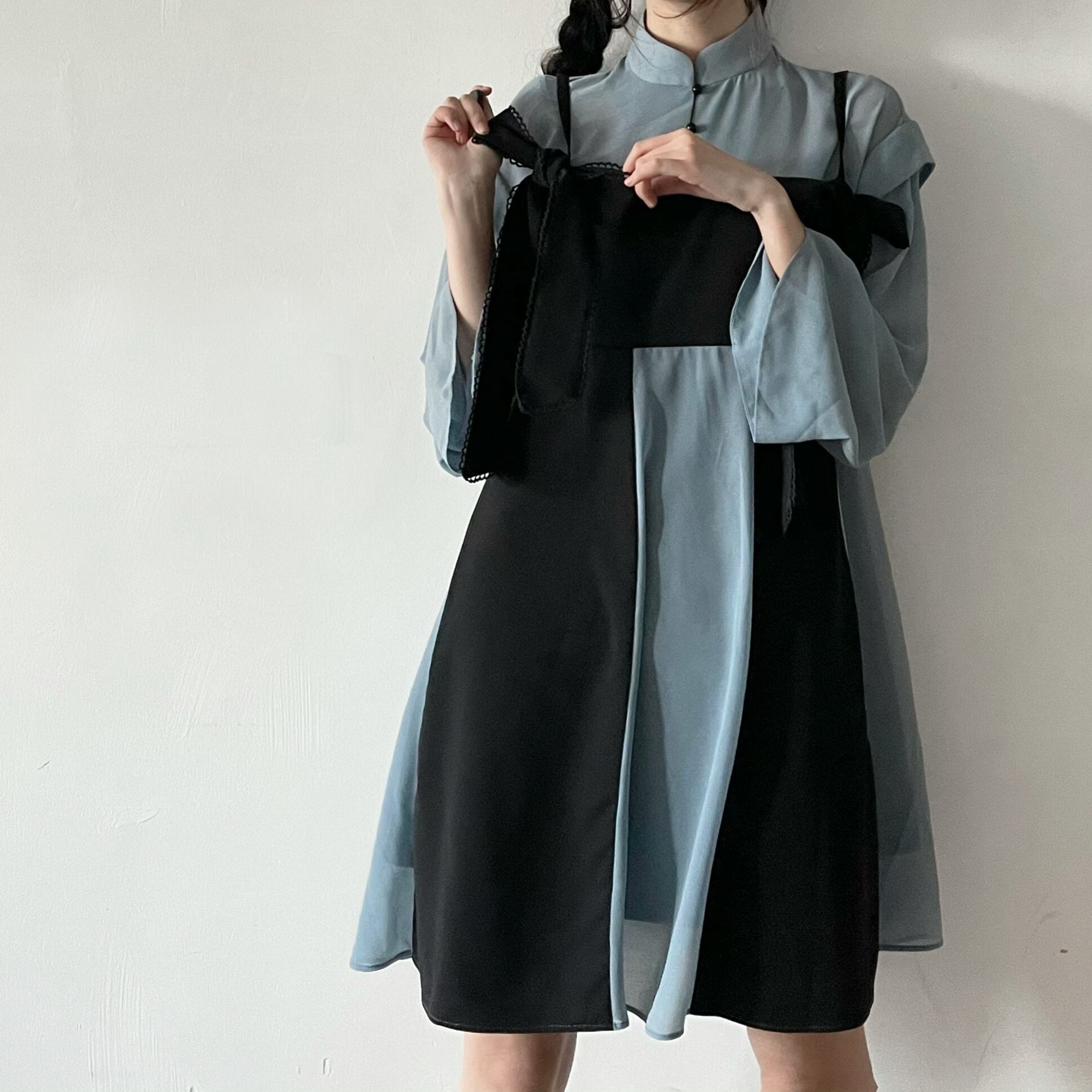 色:大きな弓と青と白のドレス,大きな弓と赤と黒のドレス,中国のカーディガンの赤と黒のドレス,中国のカーディガンの青と黒のドレス
