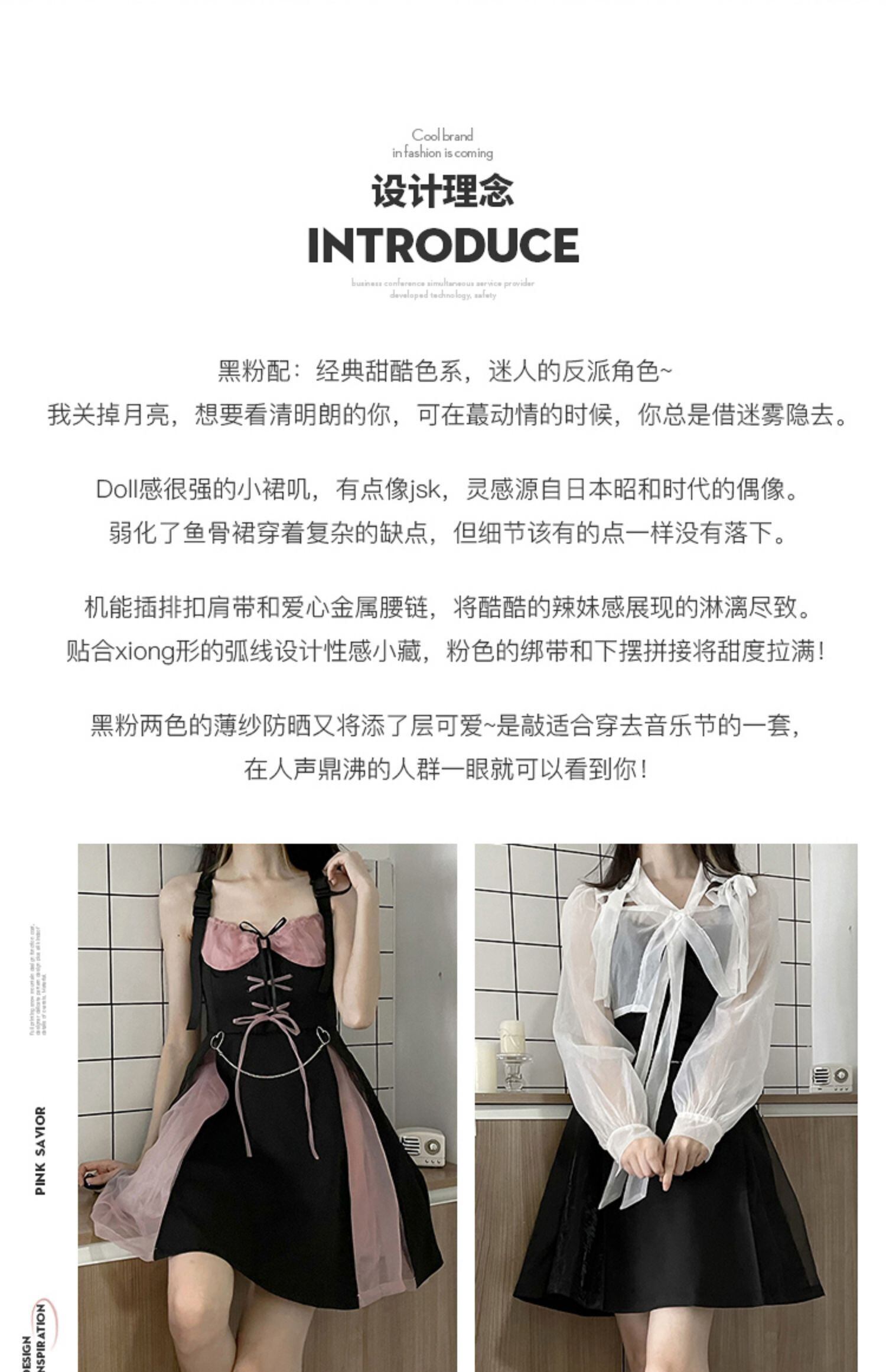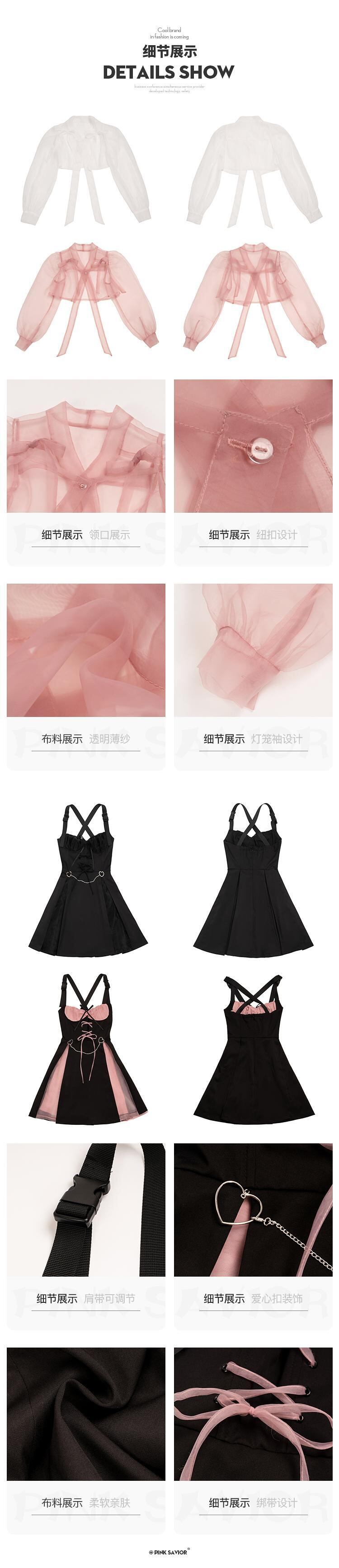 色:白の透明カーディガン,純粋な黒い魚の骨の小さな黒いドレス,ピンクの透明カーディガン,ブラックファイトパウダーフィッシュボーンリトルブラックドレス