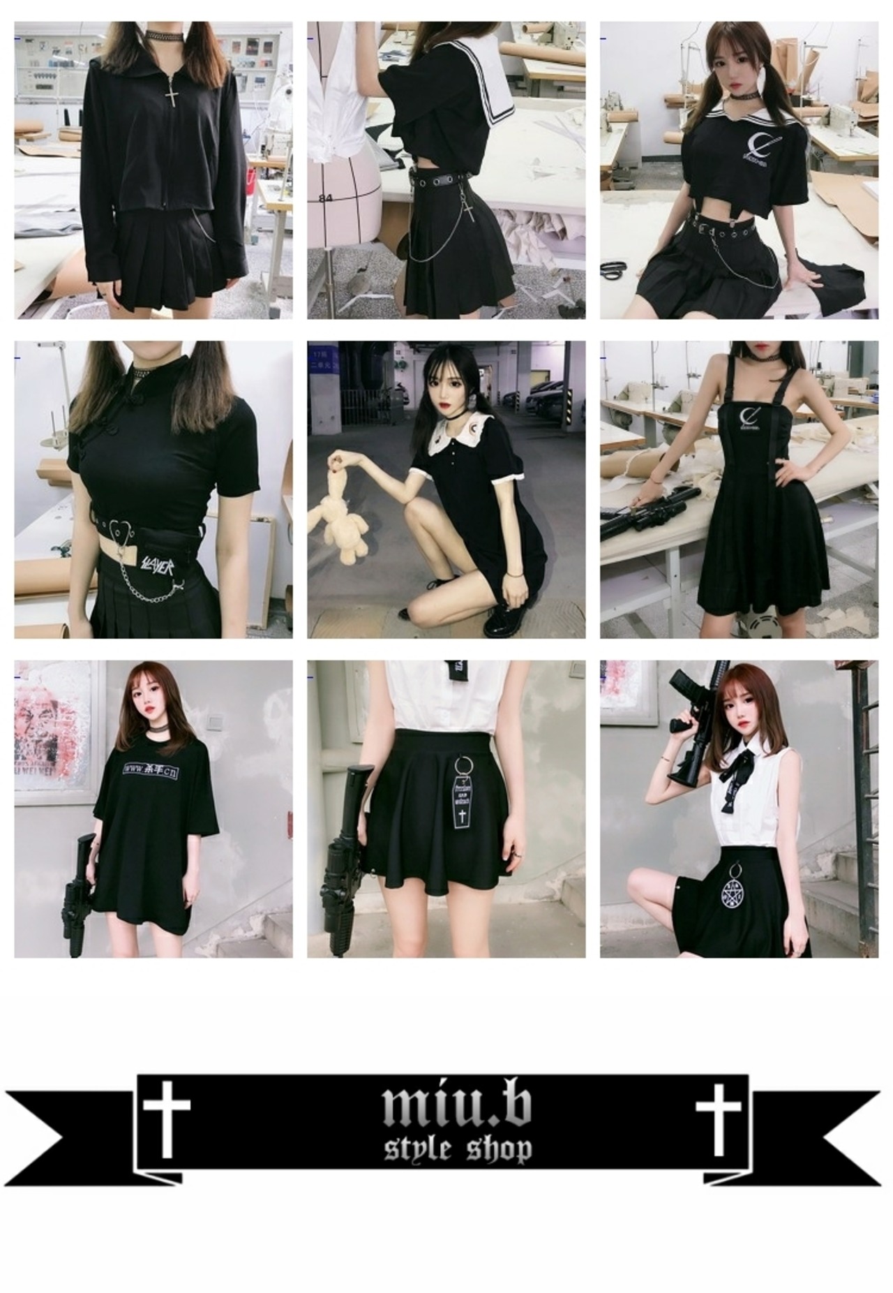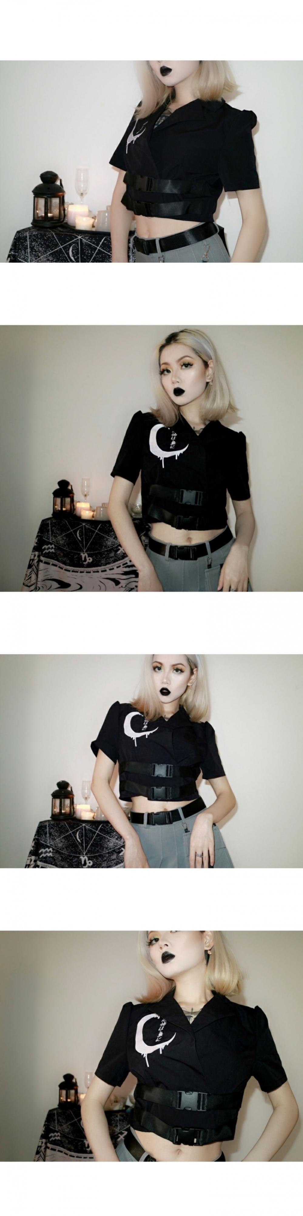 色:ブラックムーン刺繡ワンピーストップ