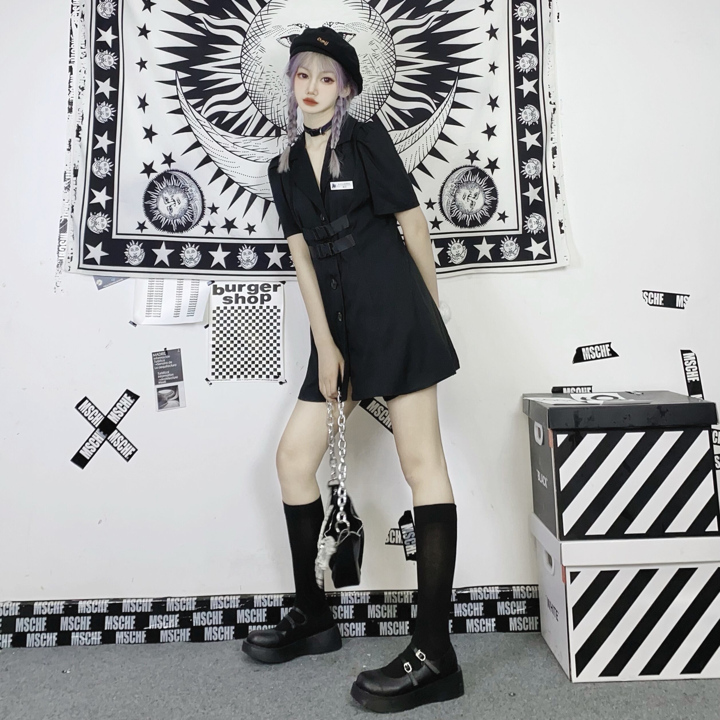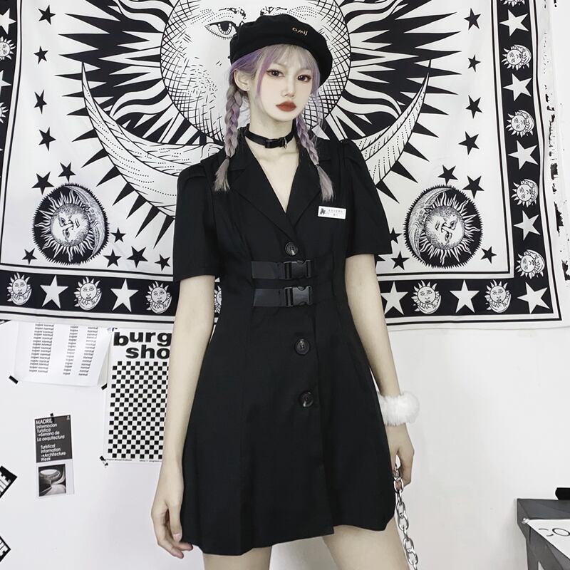 LADY GHOSTスタイルバックルスリムブラックワンピース夏服 レッド 大人ガーリー スウィート キュート カジュアル 夏物 pLegLadGothic293839709102 | LADY GHOST
