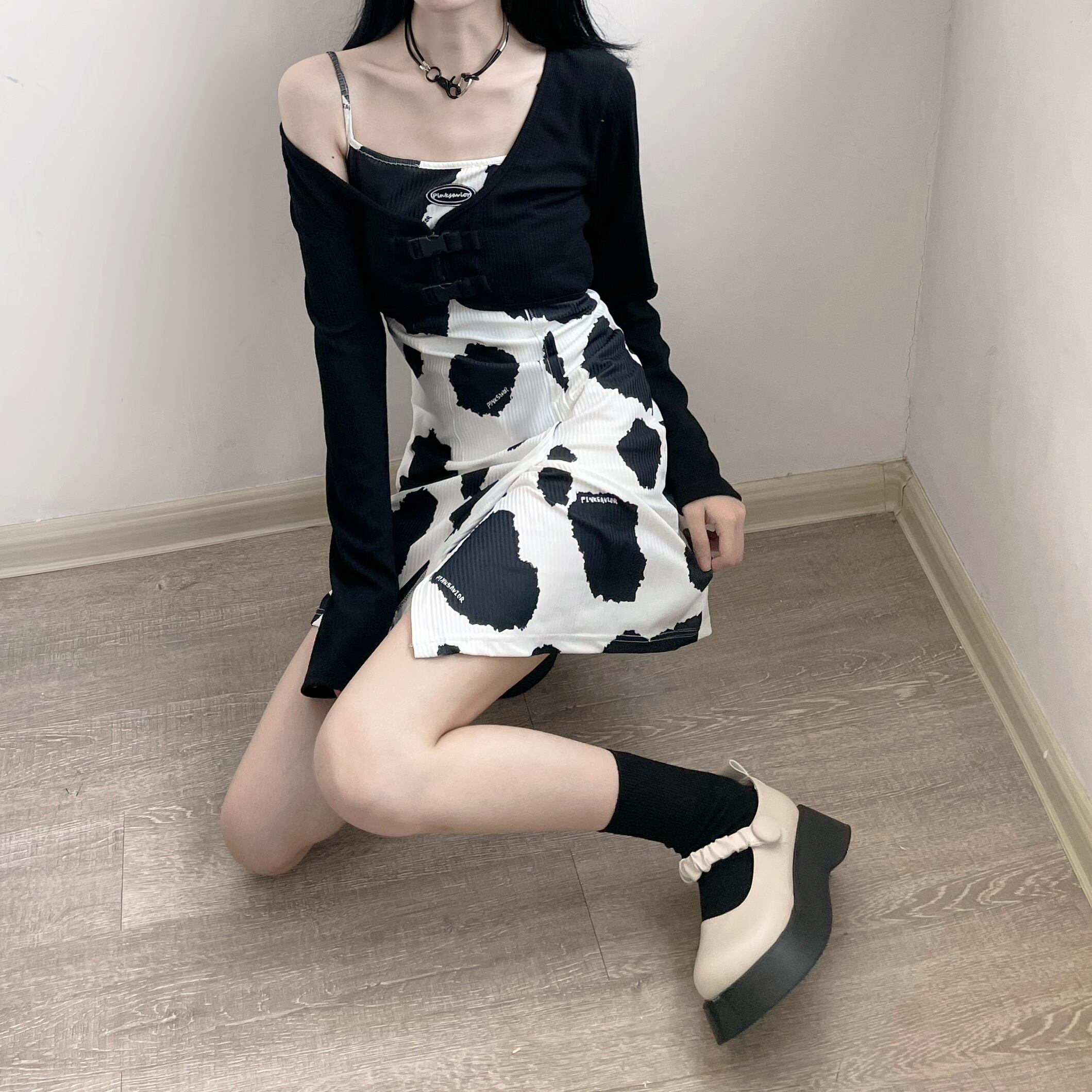 色:カウピットストリップサスペンダースカート,ブラウス,偽のツーピース牛長袖,ズボン