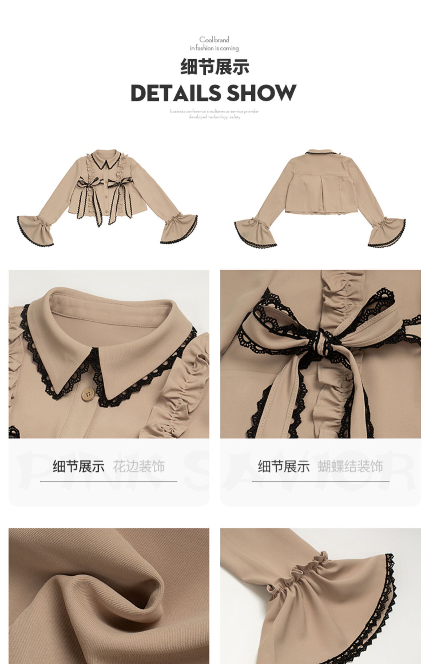 色:ブラウントップ,スカート,スーパーショートシャツ,ブラウンサスペンダースカート,ブラックサスペンダースカート