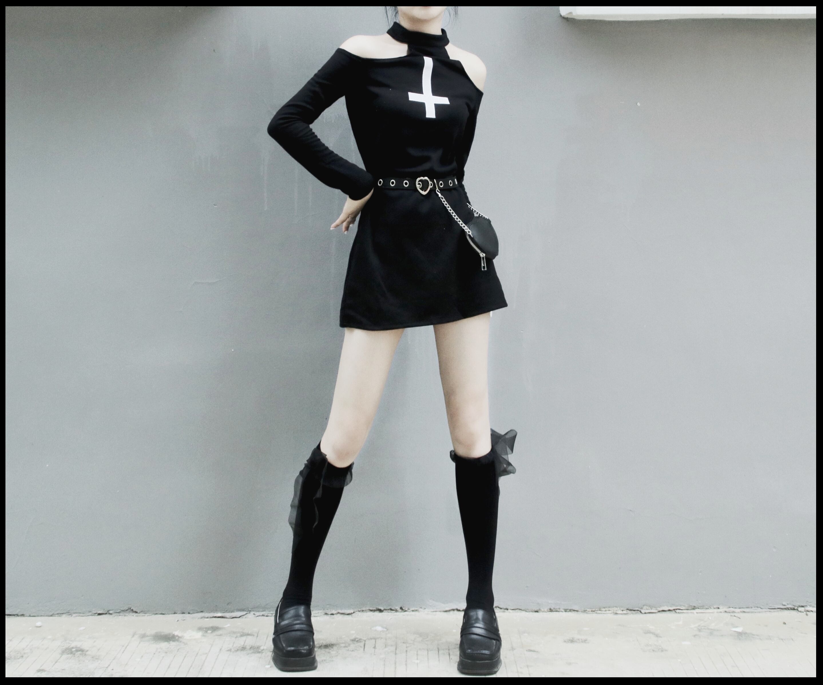 色:ベルトバッグなしの黒,黒のスカート+ウエストバッグ