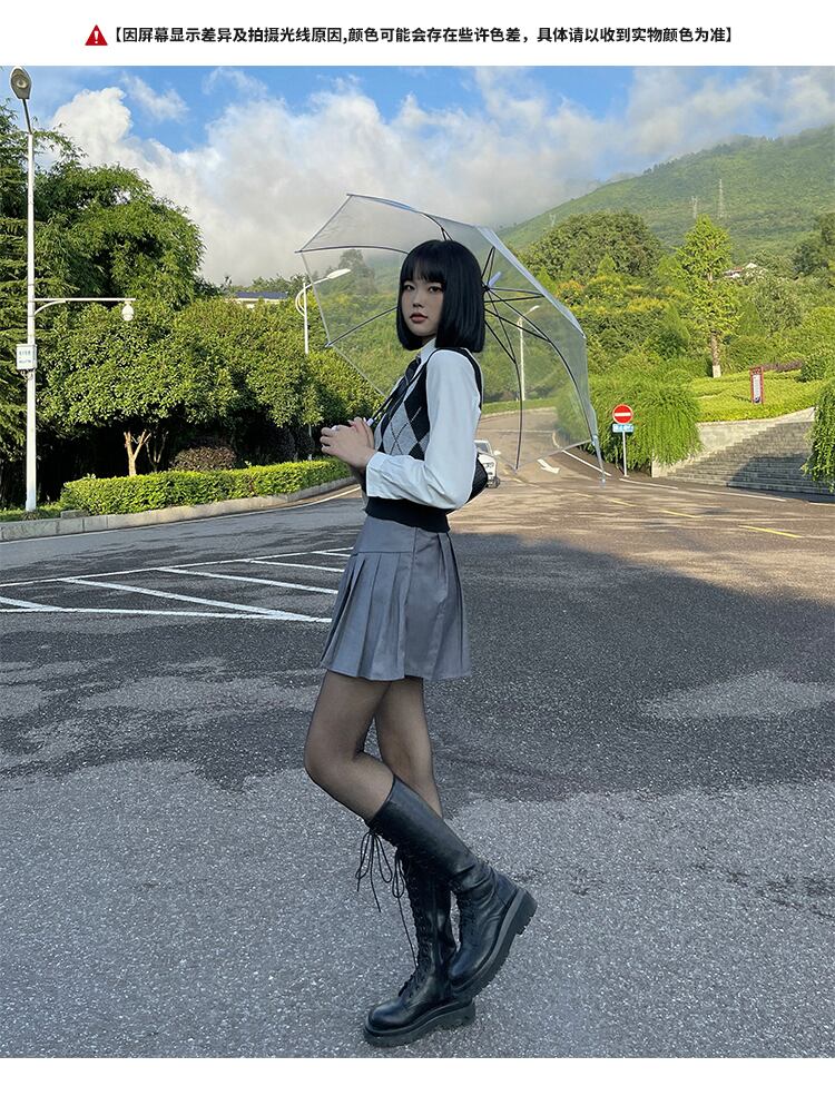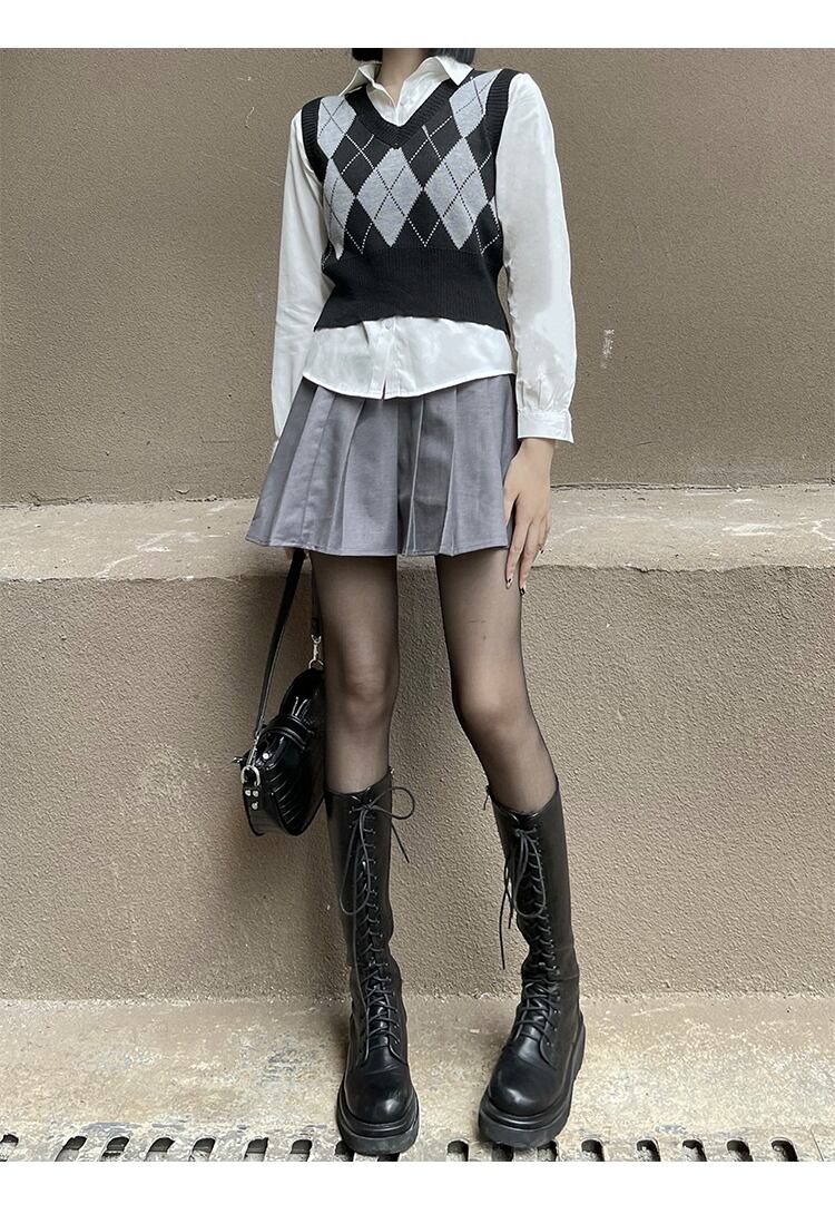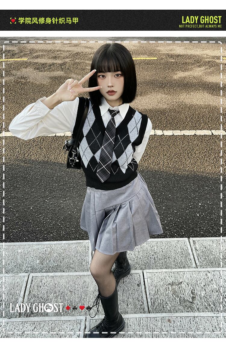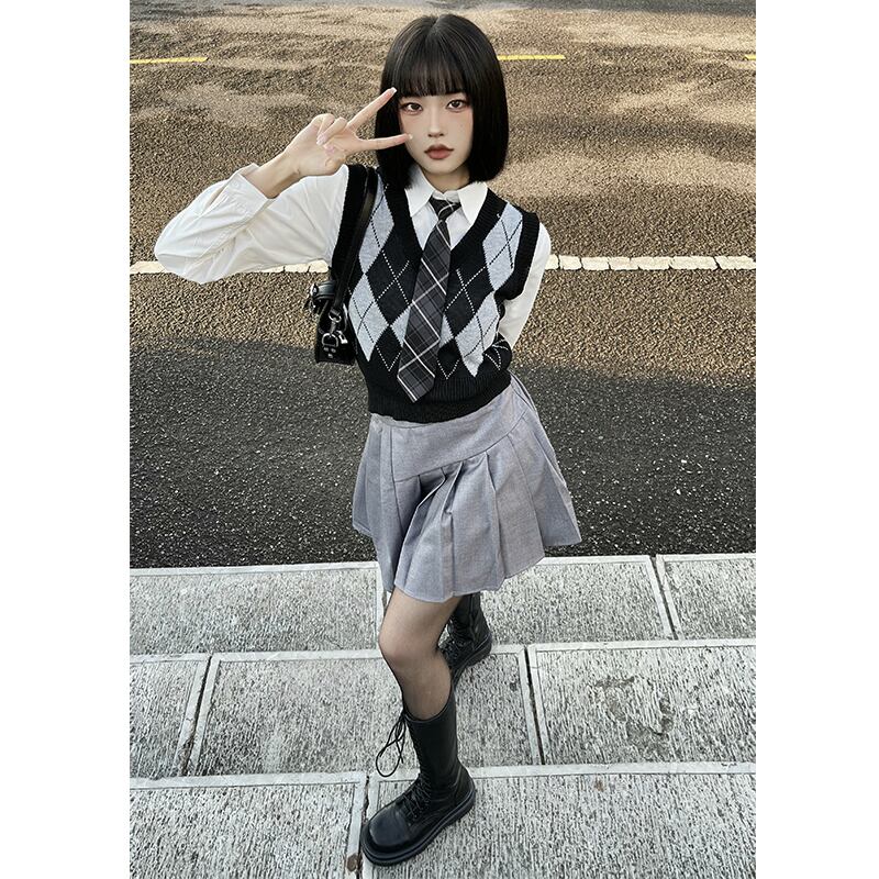 色:黒とグレーのニットベスト(ワンサイズ),白い長袖シャツ(ネクタイなし),白い長袖シャツ(ネクタイを含む)