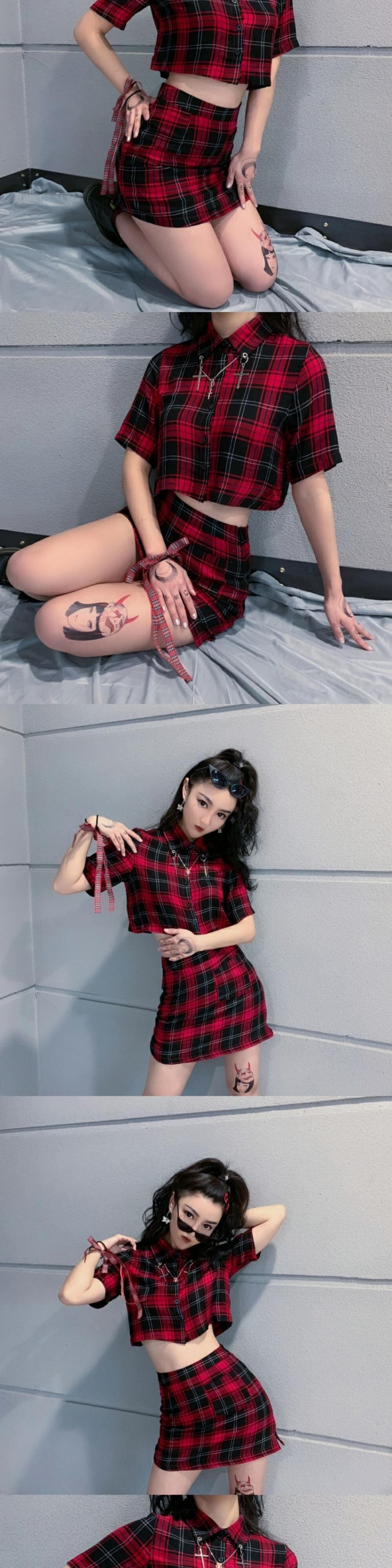色:パープルブラウス+スカート,レッドトップ+スカート