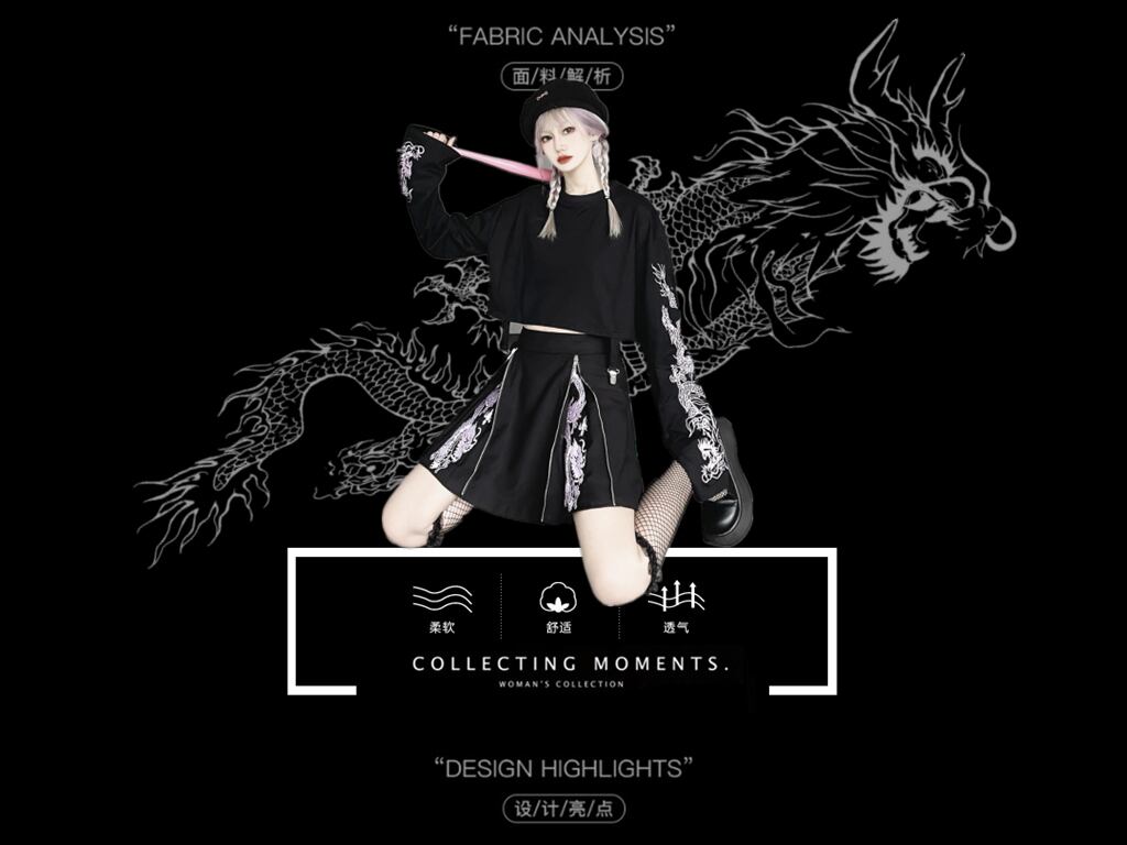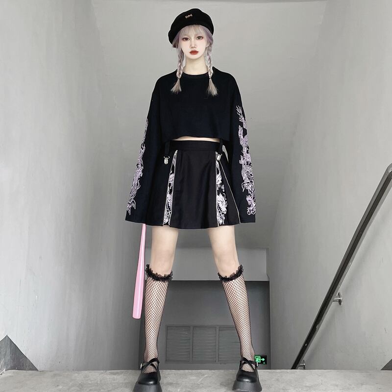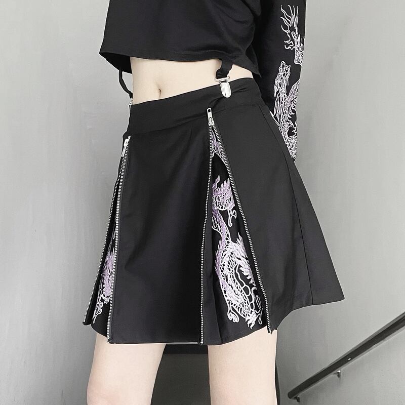 色:ブラックスカートパープルドラゴンカラーシングルスカート