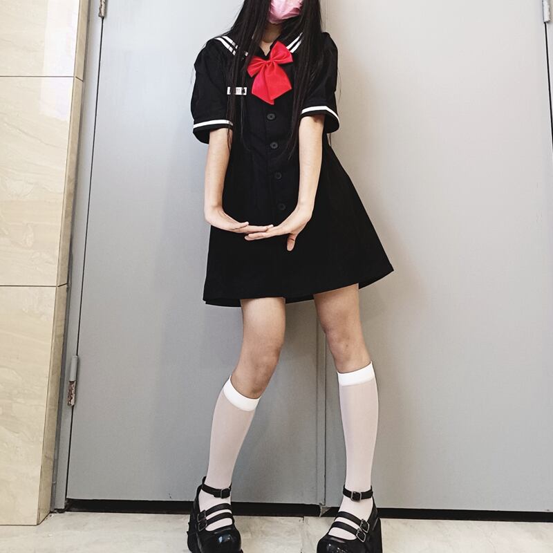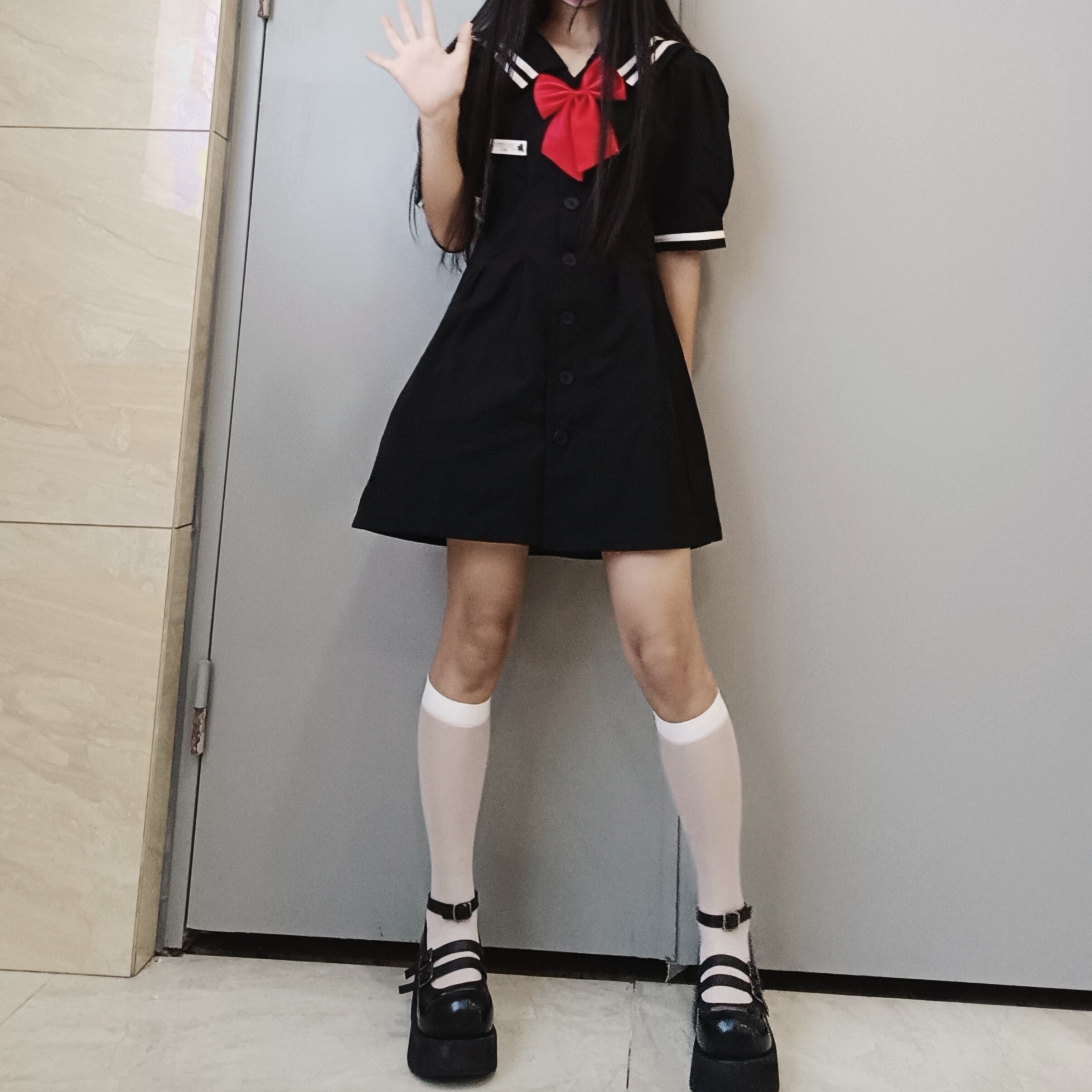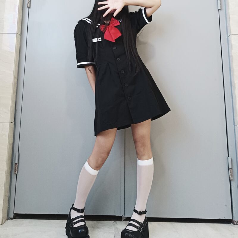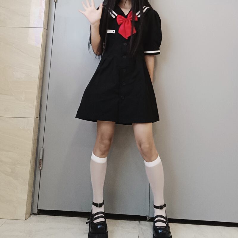LADY GHOSTスタンダードスタイルVネックネイビーカラーワンピース夏服Aラインスカート ウェストレディース レトロ 夏物 ウエスト pLegLadGothic292576403281 | LADY GHOST