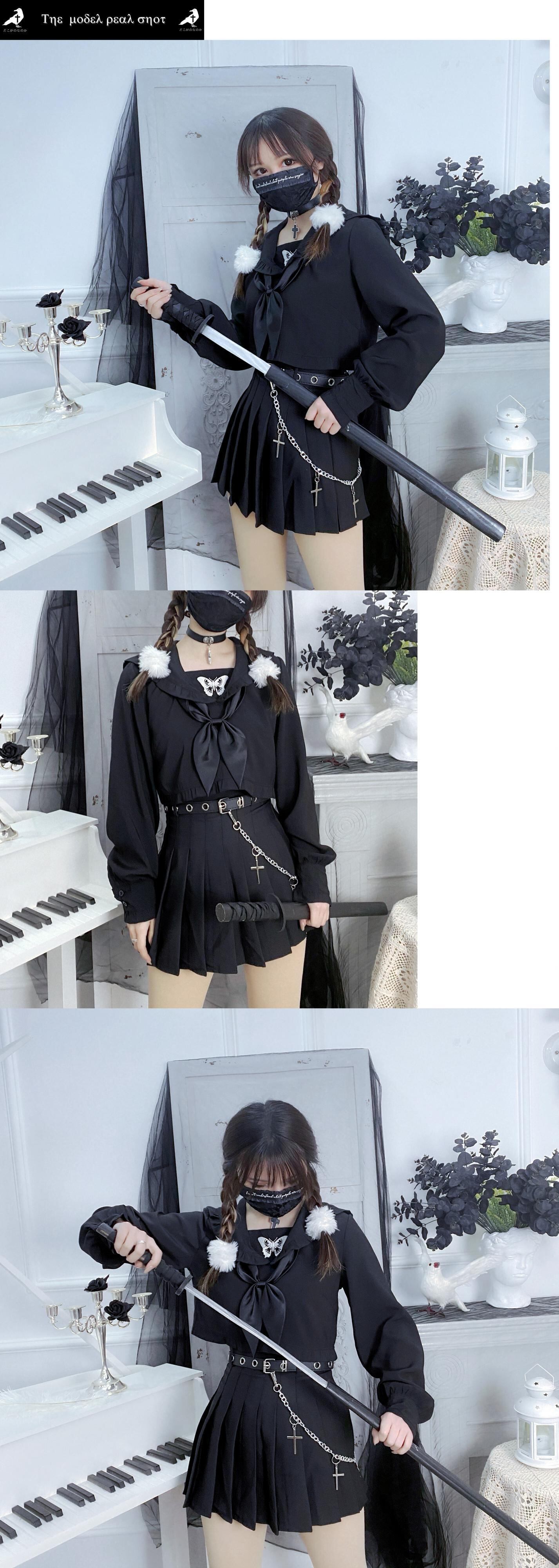 色:黒帯シングルベルト,黒帯+プリーツスカート,黒のロングスカート+ベルト