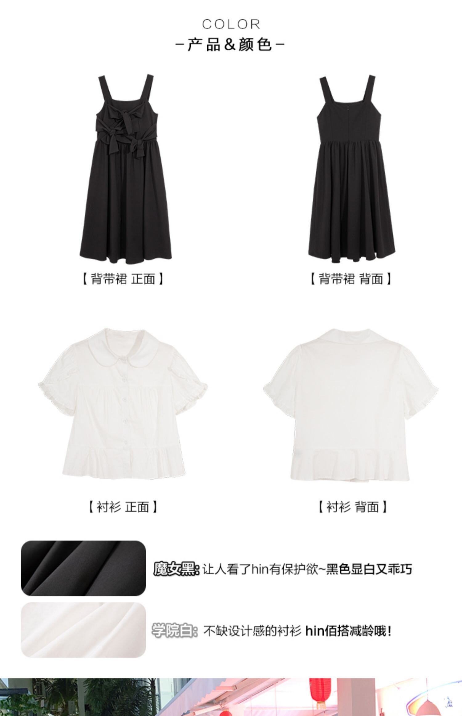 色:魔女の黒いサスペンダースカート,白のシャツ,ストラップスカート+白シャツスーツ