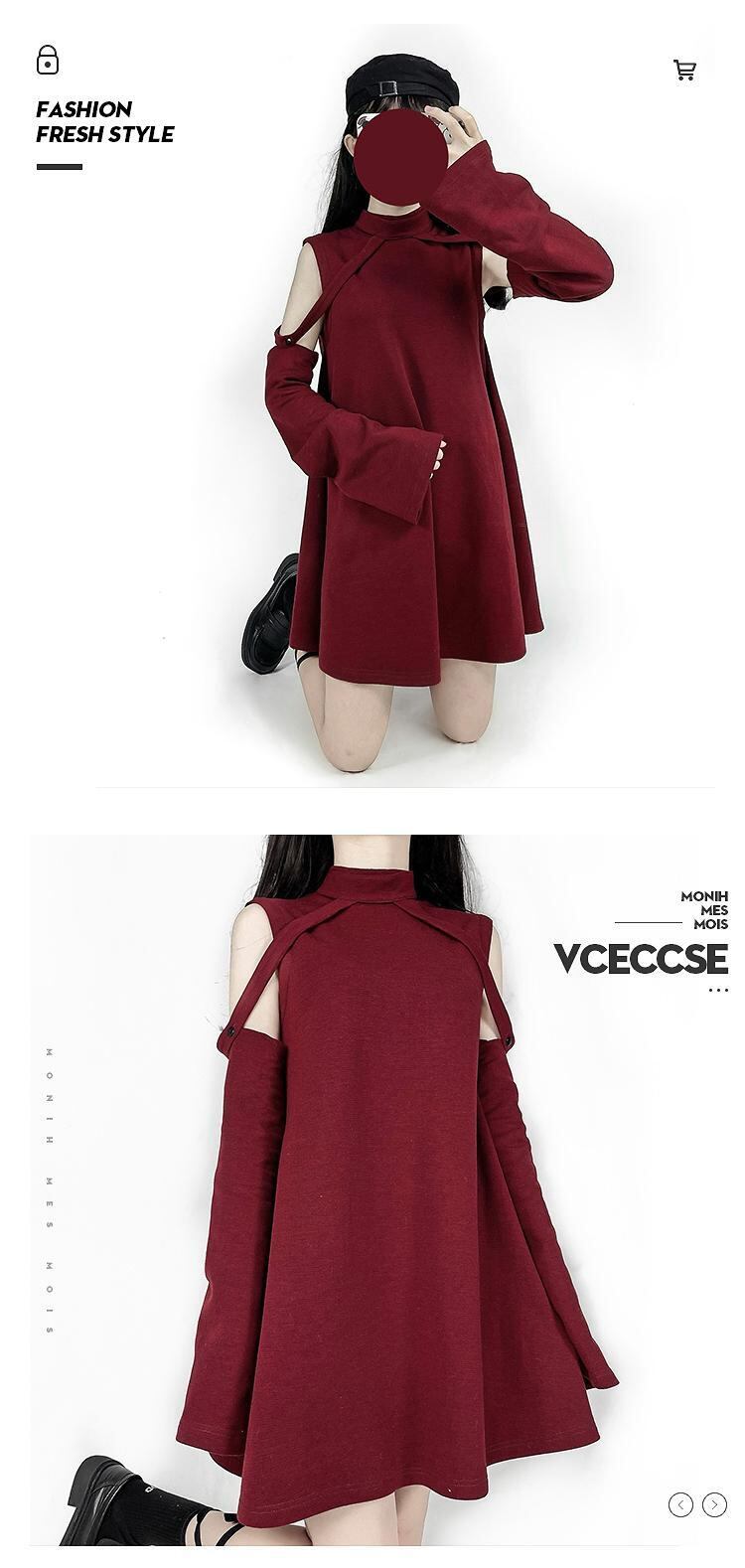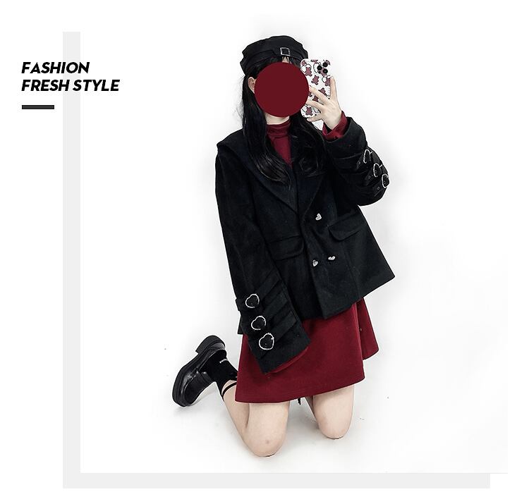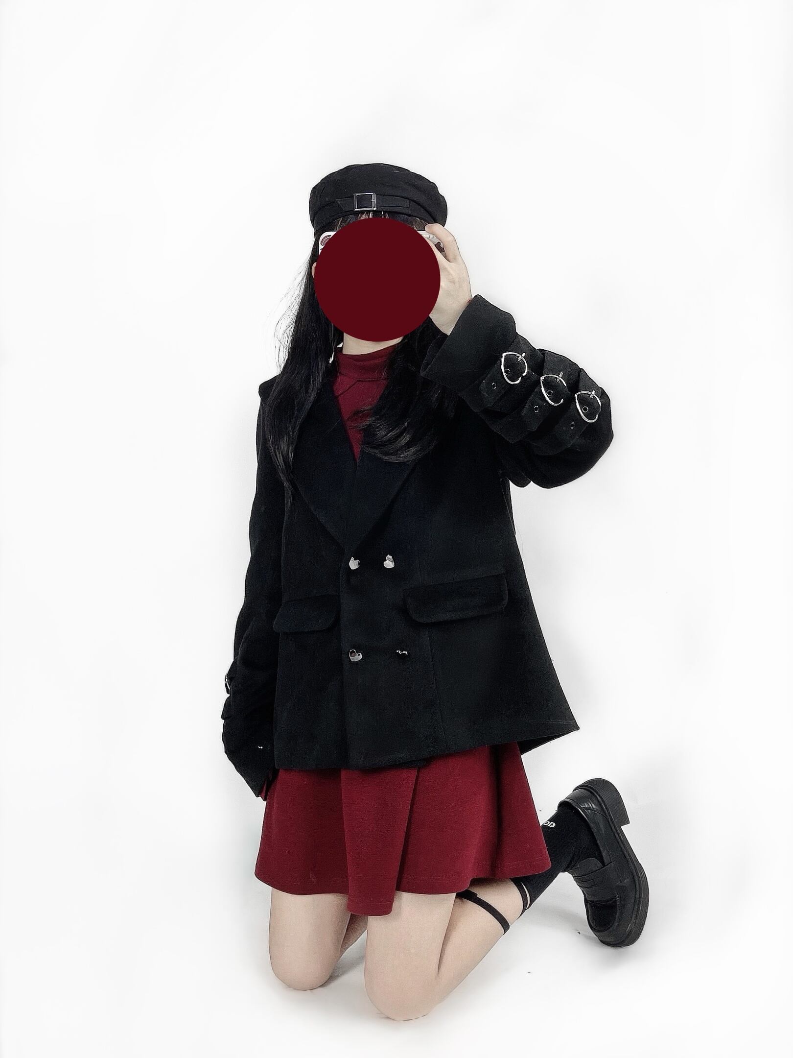 色:ウールコート,黒ガーゼスカート,ホワイトベース,赤いドレス(ストラップレス),赤いドレス(ストラップレスではありません)