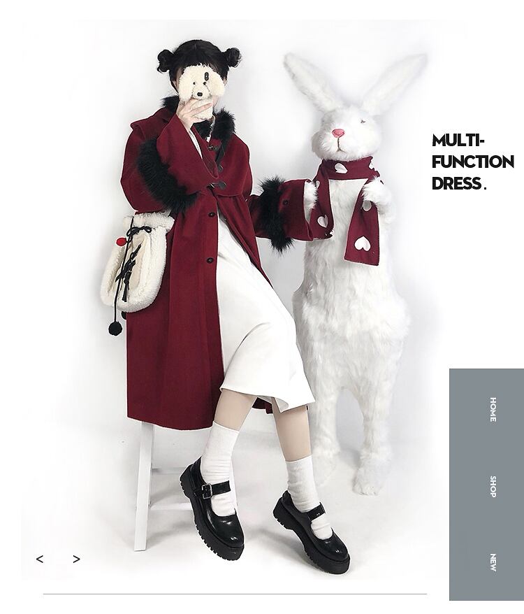 色:赤いウールのコート,白いドレス,このオプションは気にしないでください