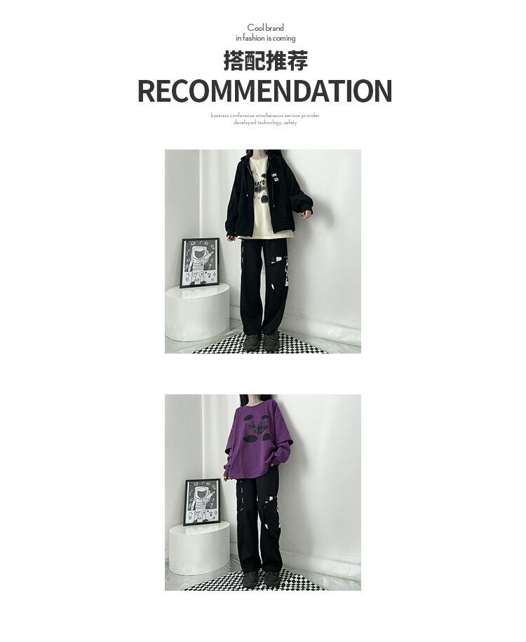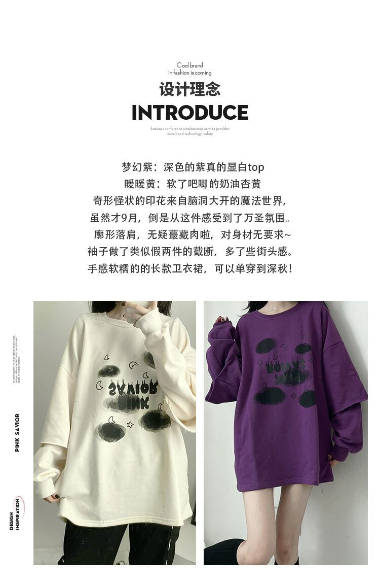 プリントラウンドネックルーズプルオーバー 秋物ウィンターイエローブラウス セーター ロング ピンク オータム 冬物 Oネック パープル 長袖 pinksavior73440442319 | LADY GHOST