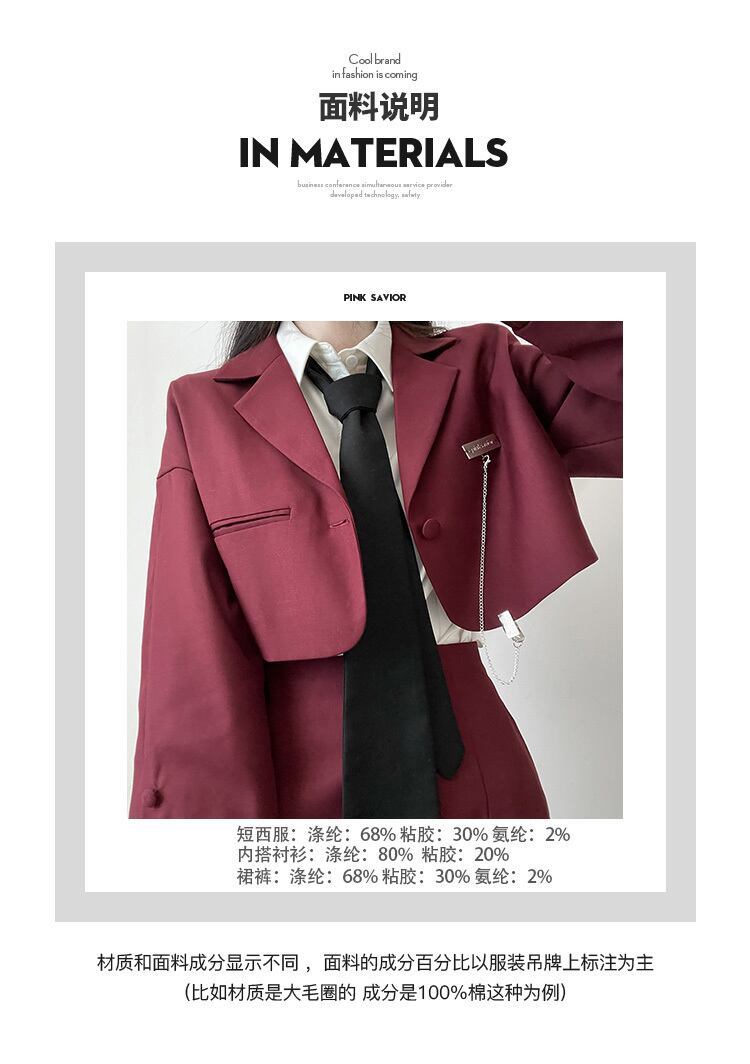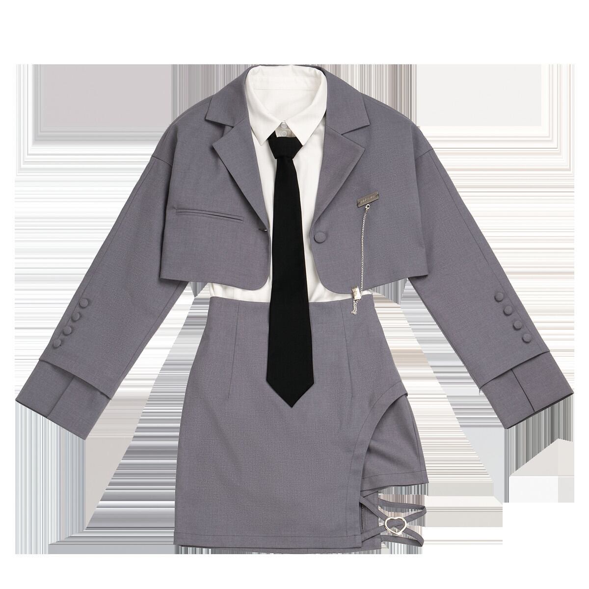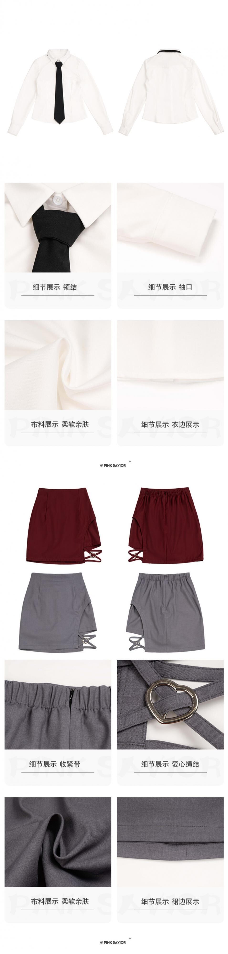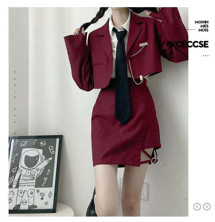 色:グレーのショートスーツ、約1週間の先行販売,ブルゴーニュのショートスーツ、約1週間の先行販売,グレーのハーフスカート先行販売約1週間,ブルゴーニュハーフスカート先行販売約1週間,白いシャツ無料の黒いネクタイ