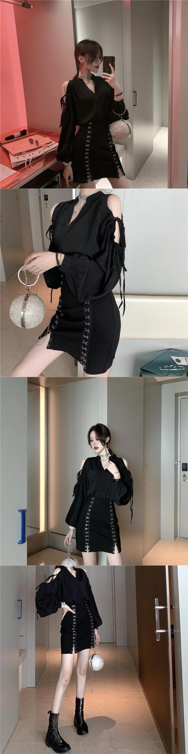 色:黒いシャツ,黒スカート