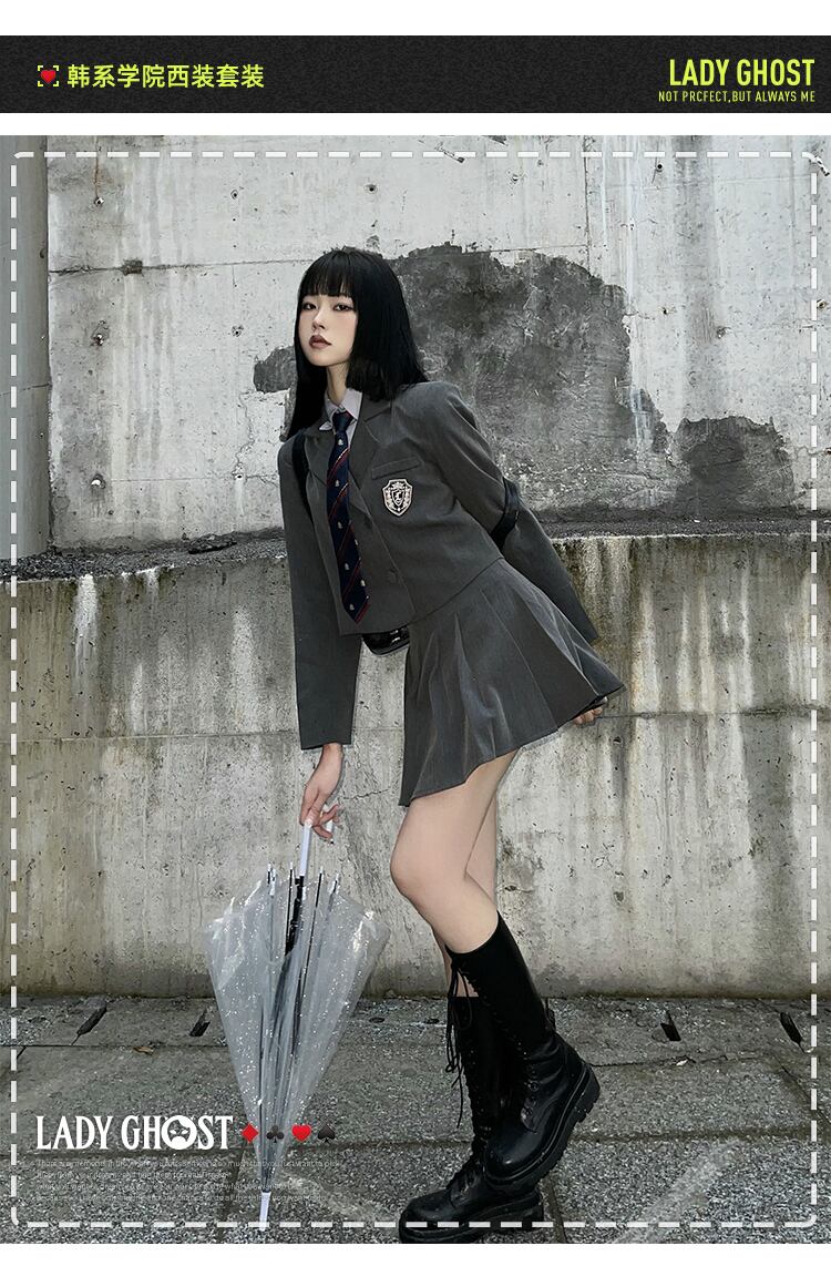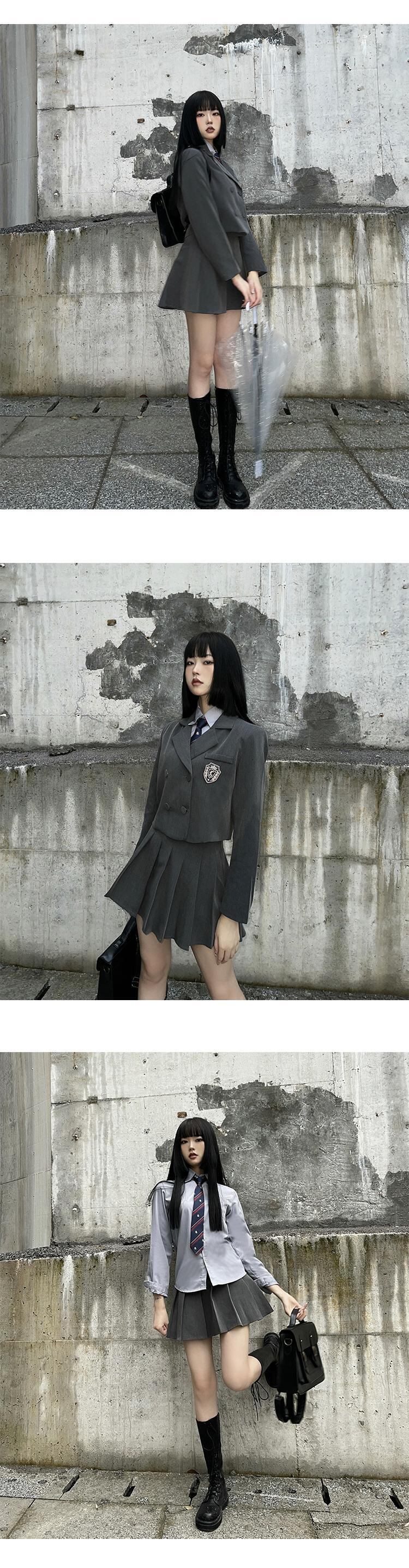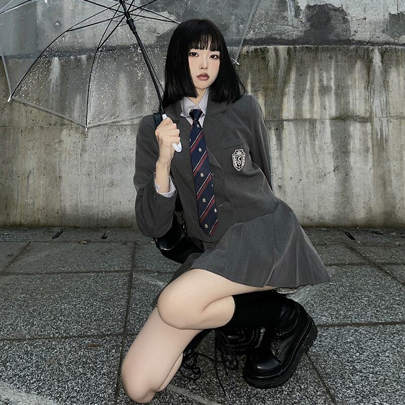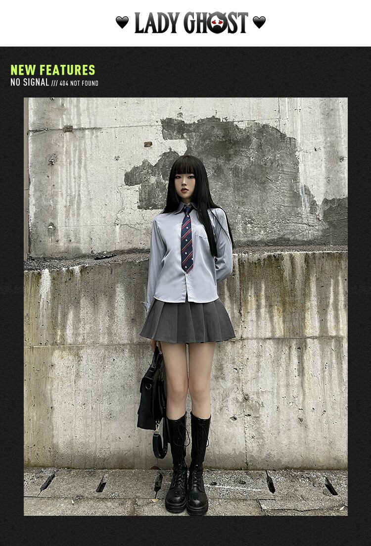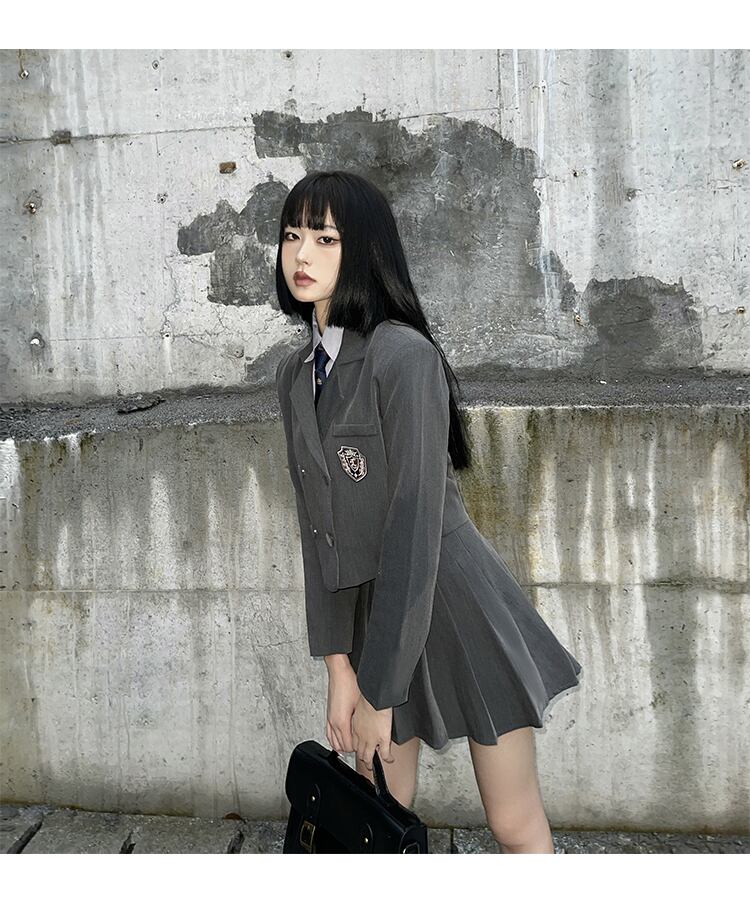 色:グレーのスーツ+グレーのスカート,グレーブルーのシャツ,グレーブルーのシャツ+ネクタイ