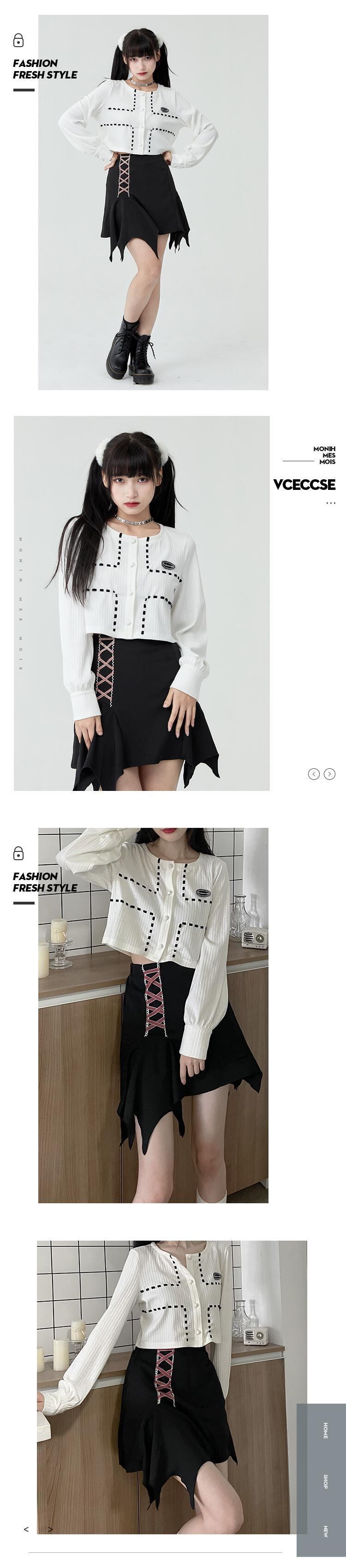 色:フリースの白いニットカーディガン,不規則なネクタイショートスカート,ダブテールスカートドレス
