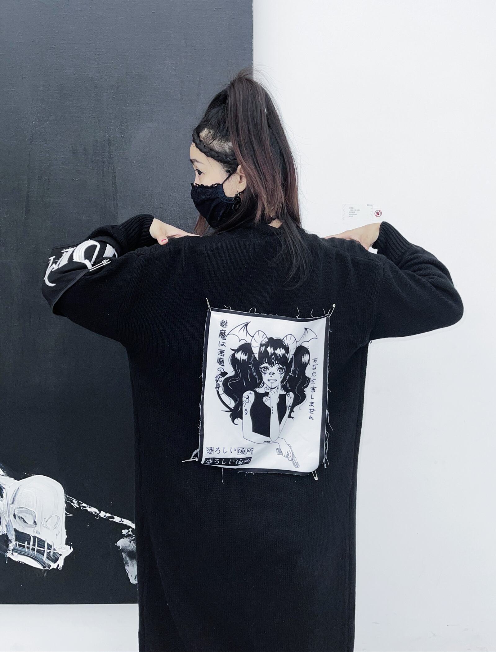 LADY GHOSTスタイルロングウールカーディガンダーク秋物ウィンターセーター ジャケット レディース オータム 冬物 長袖 pLegLadGothic23241443128 | LADY GHOST