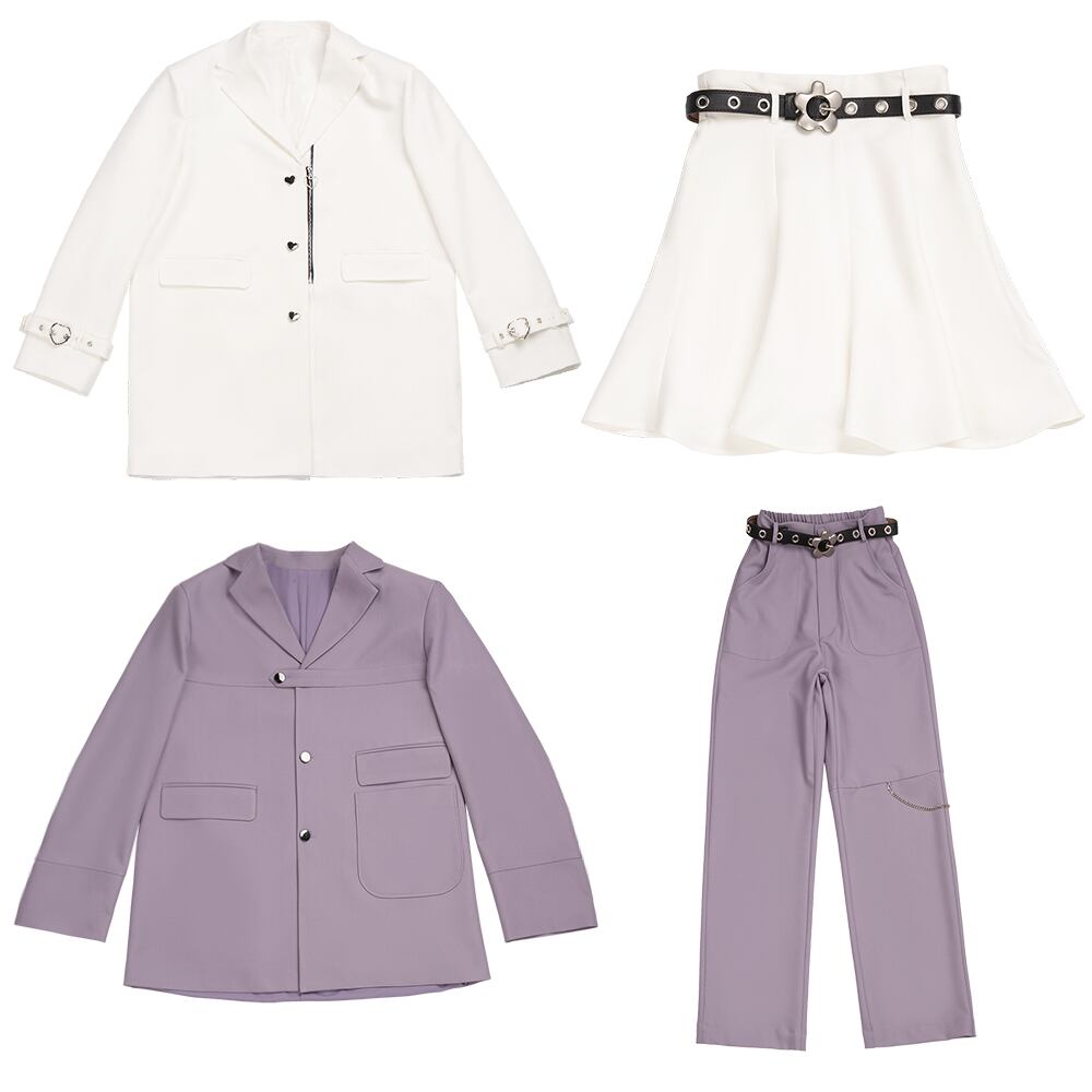 色:パープルカジュアルスーツ入荷,ホワイトカジュアルスーツ入荷,ホワイトフラワーベルトハーフスカート入荷,パープルフラワーベルトカジュアルチェーンパンツ在庫あり,油絵ホワイトプライマースポット