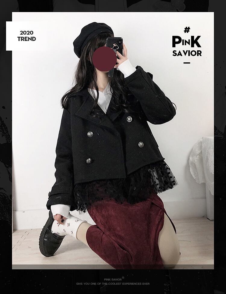 色:赤いセーター,白いセーター,ウールコート,赤いロングスカート,黒のロングスカート