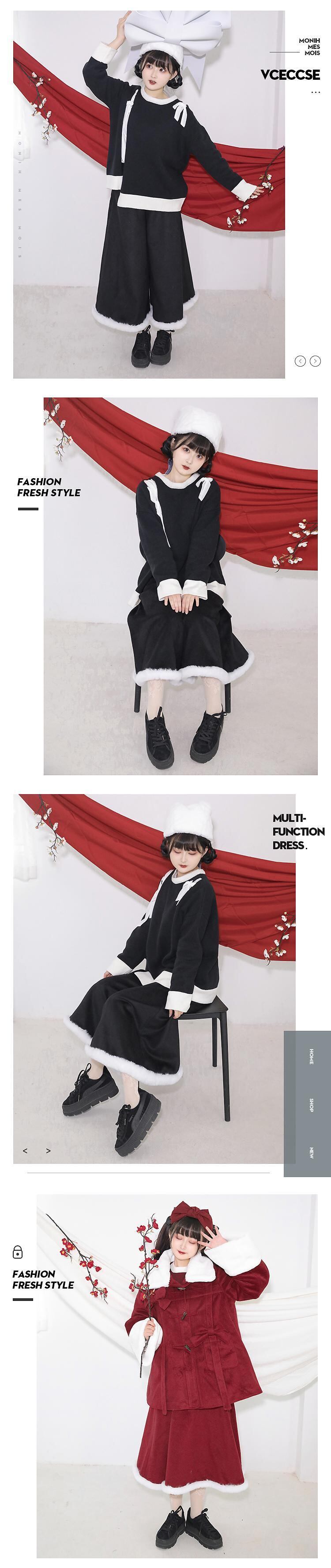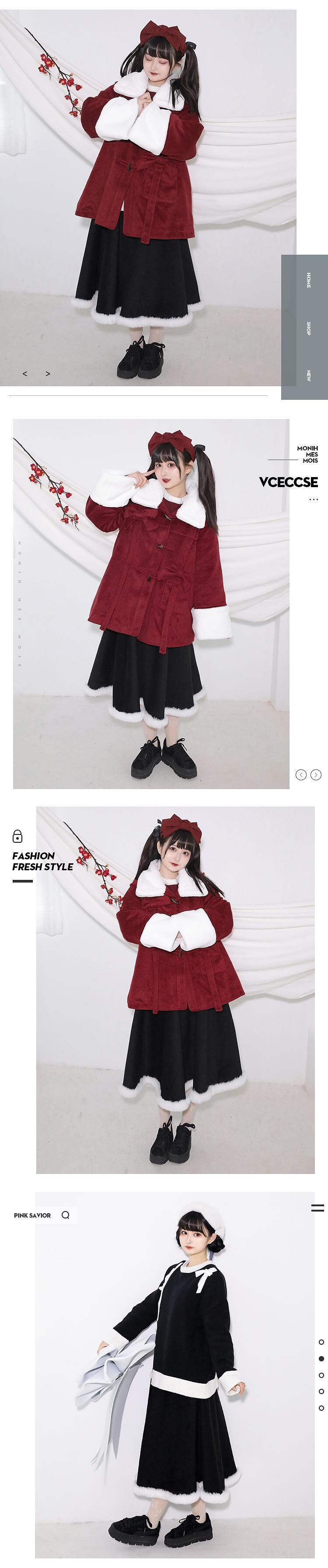 色:ホワイトウールコート,赤いスカート,赤いセーター,赤いウールのコート,レッドワイドレッグパンツ,黒スカート,黒いセーター,黒いズボン